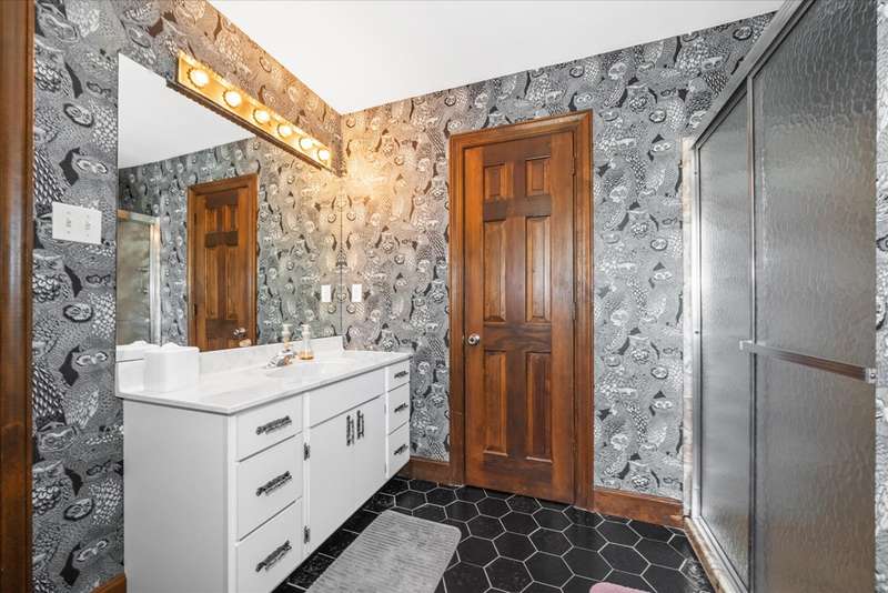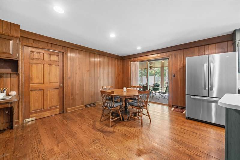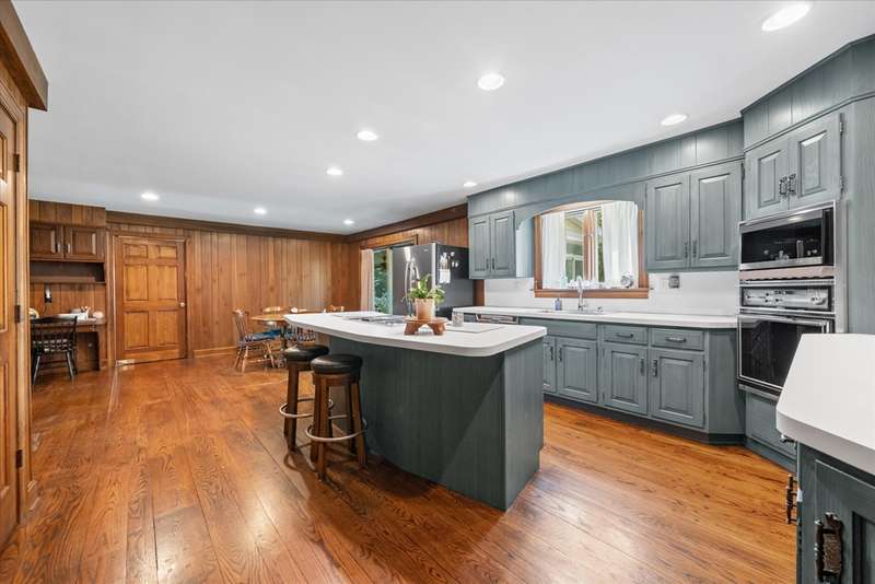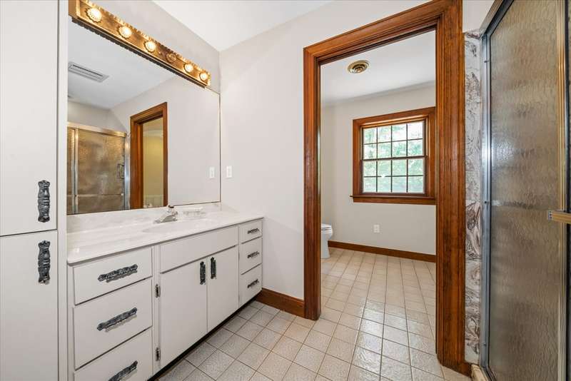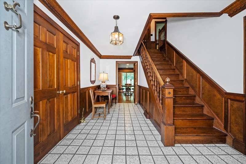 Privately positioned on a cul-de-sac in Barley Mill Court, this original-owner stone and brick home pairs a sought-after address with the solid construction you can count on, rarely found in today’s builds. The foyer sets the tone with a Hampton-style staircase, raised-panel millwork, and detailed crown moulding that carry through the main living areas. On the main level, the family room showcases raised-panel millwork with a floor-to-ceiling stone, wood-burning fireplace and built-in log nook. The kitchen features generous cabinetry, a large prep island, a breakfast area, and opens by slider to an enclosed porch wrapped in sliding windows with a private, tree-lined backyard. Beautifully maintained hardwood floors extend through the kitchen, laundry, and half bath. The main level finishes with an expansive living room, where French doors provide additional access to the porch. Upstairs features four bedrooms and two full baths, including a smart split bath with a pocket door that lets two spaces function at once. The lower level offers a walk-up to the side yard, daylight windows, a full bath (2022), a large pantry closet, storage closets, and plumbing ready for a future wet bar. Finish for approximately 1,577 sq ft of additional living space (buyer to verify). A two car garage at the rear of the home enhances curb appeal and offers a more private approach. Recent improvements provide confidence: roof (2015), dual-zone air conditioning (2022), heater (2022), water heater (2022), new sump pump (Sept 2025), and all systems serviced Sept 2025. Piped for a central vacuum. Property being sold "AS-IS". A timeless foundation awaiting your style and vision. Convenient to Wegmans, Barley Mill Plaza, Greenville Center, parks, and restaurants.