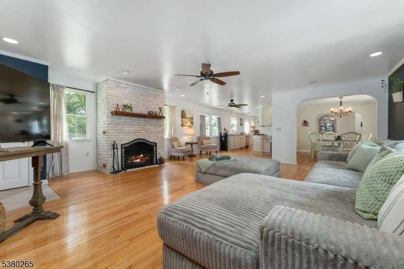 Pristine ranch in a picturesque setting across from open farmland! This tastefully decorated home offers numerous updates inside and out. Recently installed James Hardie plank siding with new trim and gutters (all warrantied), refreshed landscaping and walkway, and patio. A newly tarred and chipped driveway and road, plus a newer roof greet you upon arrival. Inside, gleaming hardwood floors flow throughout. The formal dining area opens to a spacious family room with a charming brick wood-burning fireplace perfect for cozy evenings. The well-appointed kitchen features stainless steel appliances, including a brand-new refrigerator,gas propane range, and ample cabinet storage. A convenient powder room is located just off the main living area. A pocket door separates the hallway that leads to three comfortable bedrooms and a full bath. A large, dry unfinished basement provides laundry, storage, and walk-out access to the fenced backyard complete with a refreshed patio and storage shed. A new water filtration system is being installed September 2025. Close to major highways, shopping, and dining, this lovely home blends comfort and convenience. Sale contingent on seller finding suitable housing