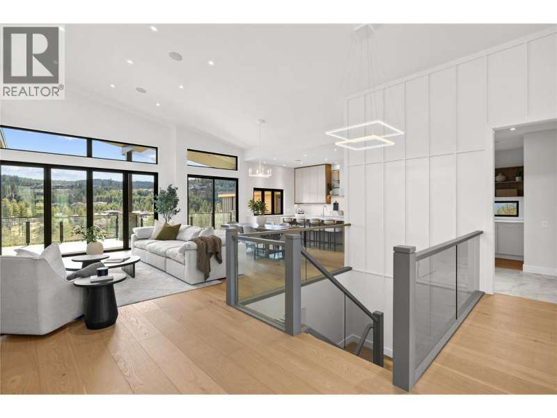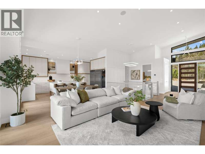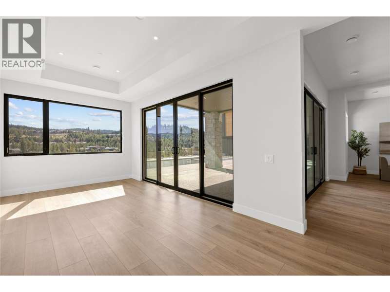 Nestled in the heart of the Okanagan, Predator Ridge Properties offers an unparalleled blend of luxury homes, breathtaking views, and resort-style amenities—perfect for those seeking an elevated lifestyle in a vibrant, master-planned community. In the prestigious Wildsong enclave this just-completed Serenity Peak build, by award-winning Carrington Homes, is a masterpiece. The 5-bed, 4-bath walkout rancher spans over 3,700 sq.ft., featuring soaring ceilings, accordion and pass-through windows, and high-end finishes. The open-concept layout highlights a designer kitchen with a massive island, floor-to-ceiling cabinets, and a walk-through pantry. The luxurious primary suite offers sweeping views, an ensuite with heated floors, and a spacious walk-in closet roughed-in for laundry. Two additional laundry areas provide added flexibility. Enjoy outdoor living with a covered deck, walkout patio with built-in speakers, low-maintenance yard, and in-ground saltwater pool with an automatic cover. A 3-car garage completes this exceptional property, located minutes from Sparkling Hill, Predator Ridge Golf Course, Silver Star, downtown Vernon, local beaches, and parks. Community residents enjoy access to championship golf, a state-of-the-art fitness centre, pool, racquet courts, hiking and biking trails, dining, a local market, community events, and a wellness-focused lifestyle. Live the luxury Okanagan lifestyle with Predator Ridge Properties. GST applicable. (id:7434)