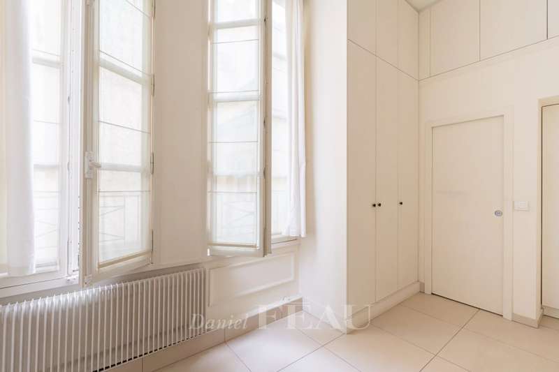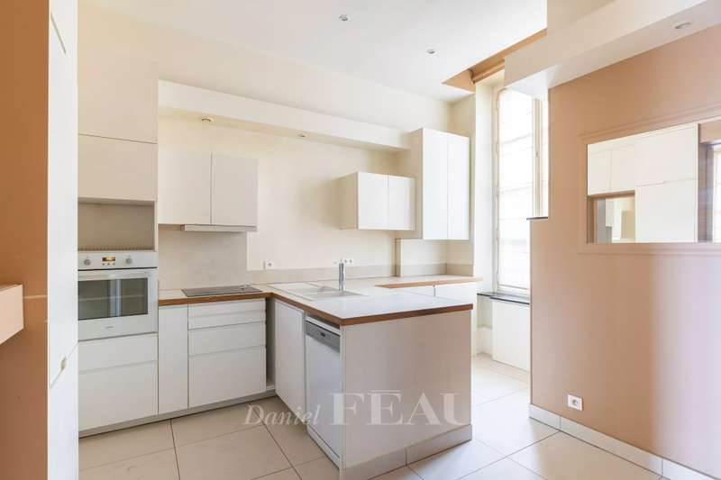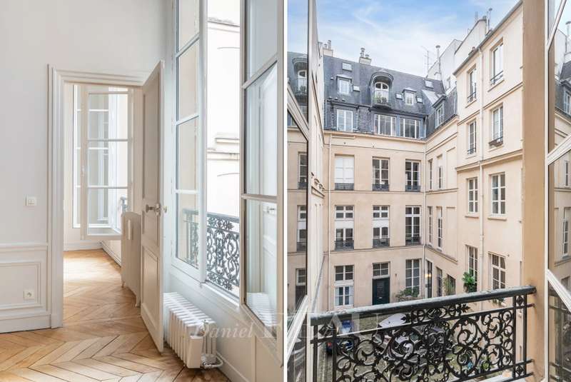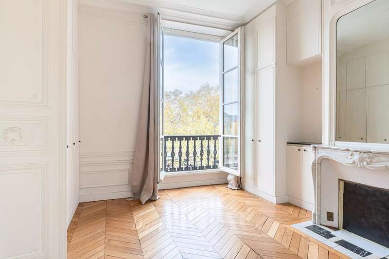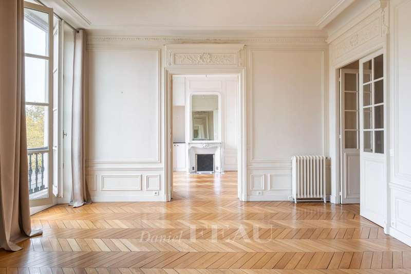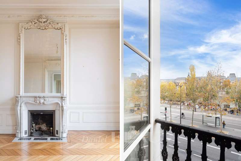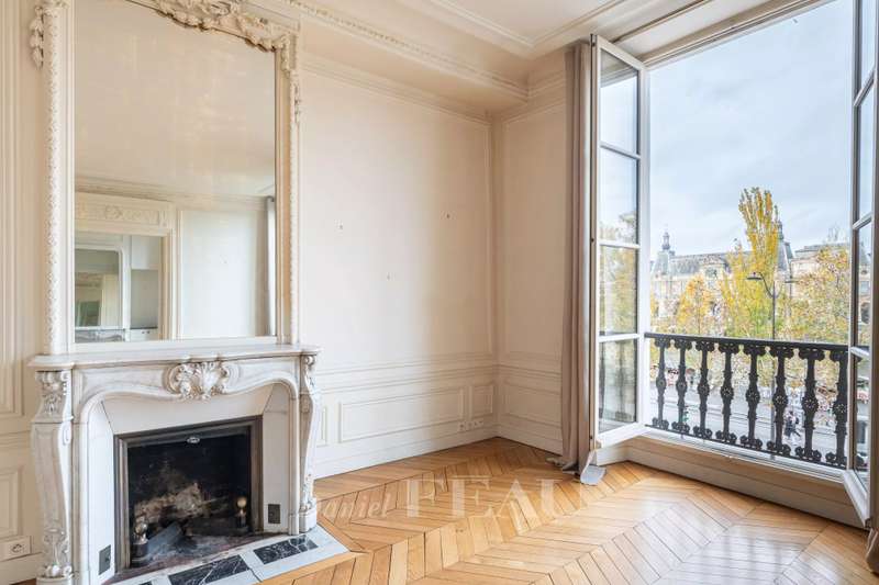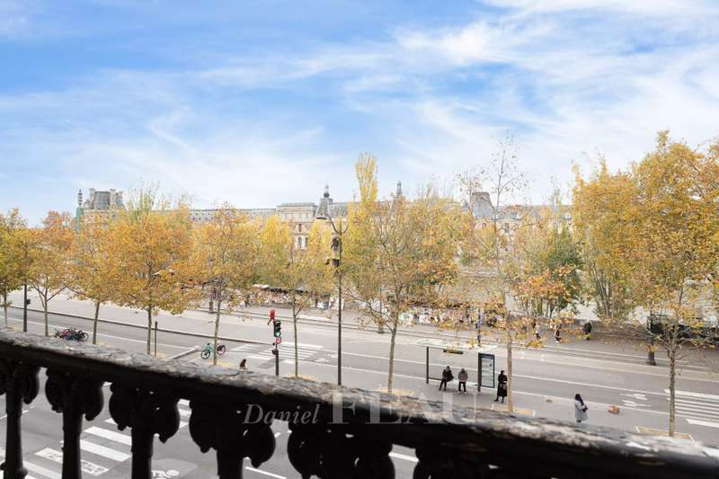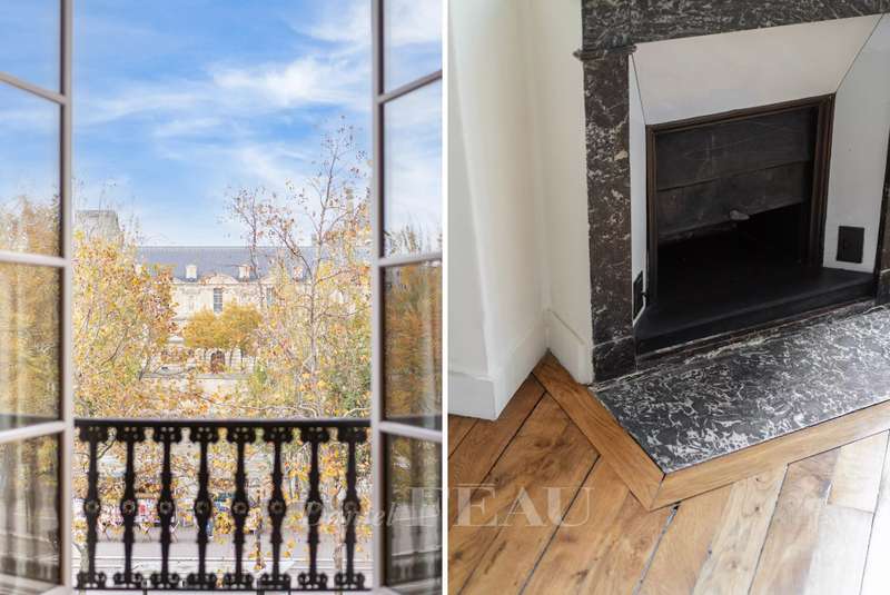 Quai Malaquais. This near 200 sqm apartment on the second floor of a fine period building enjoys a view of the Seine. Currently divided into two units, it could after renovation create a spacious entrance hall, a double living/reception room, a kitchen with dining facilities, a utility room, and three or four bedrooms overlooking a courtyard and each with a bathroom and wc. Period features include 3.40 metre high ceilings with mouldings, Herringbone parquet flooring and fireplaces. With a cellar and a courtyard parking space.