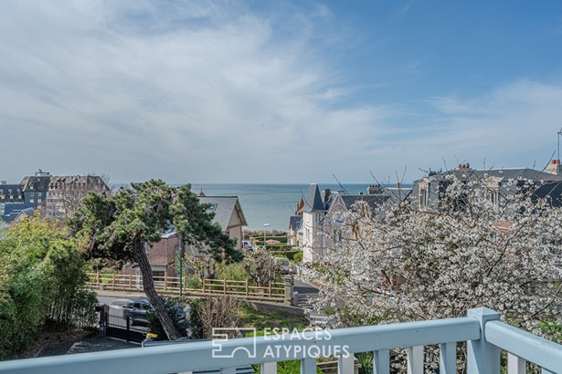 At the gates of Deauville, discover this sumptuous residence, a true jewel of architecture and charm. Ideally located just 5 minutes from the beach. This villa offers a refined atmosphere, perfect for lovers of authentic places combining comfort and elegance. From the entrance, you will be seduced by a beautiful staircase leading to the sleeping area, a warm living room with a bow window and a fireplace where beautiful fires will crackle. The ground floor is designed for moments of sharing. The living room with its open kitchen and a pleasant veranda open onto the garden, promising omnipresent natural light. The staircase leads to the first floor with an intimate space designed for comfort and modularity. A first bedroom with sea view, a private bathroom and its dressing room open the ball. Another bedroom follows, connected to a smaller room that you can convert into a dressing room, an office or a child's bedroom. On the second floor: a bedroom. Outside, the charm operates. An intimate garden where tranquility and greenery blend, a sun-drenched terrace for your moments of relaxation. A garden shed ideal for storing bicycles or creating an additional space. You also benefit from indoor parking with the possibility of parking two vehicles, a precious asset in this enchanting setting. This exceptional villa, combining character, modernity and a gentle way of life, will seduce the most demanding. Whether you are looking for a primary or secondary residence, this residence is an invitation to well-being, with the charms of the Cote Fleurie. ENERGY CLASS: E / CLIMATE CLASS E: estimated average amount of annual energy expenditure for standard use, established from 2021 energy prices: between EUR1,790 and EUR2,470 Information on the risks to which this property is exposed is available on the Georisques website: www.georisques.gouv.fr