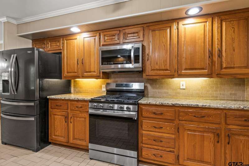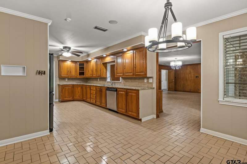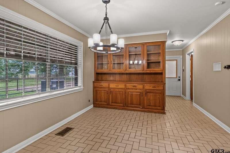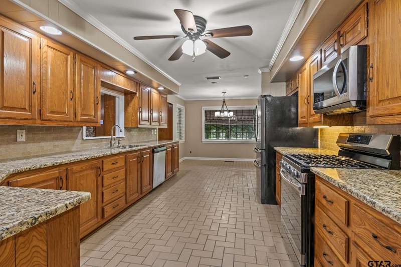 Nestled in the heart of downtown Pittsburg, this spacious 4 bed, 3 bath residence spans over 2,900 square feet of luxurious living space. The grand living room is highlighted by a charming wood burning brick fireplace and exquisite paneling, creating a warm and inviting ambiance. The well-equipped eat-in kitchen is a culinary dream, featuring granite countertops and top-of-the-line stainless steel appliances, perfect for preparing meals for a large family gathering. The primary suite is a sanctuary on its own, offering an ensuite bath with generous closets, dual sinks, and a sleek glass shower. Three additional guest rooms share two well-appointed baths, ensuring comfort and convenience for visitors. Situated on nearly 2 acres, the fenced yard provides an expansive outdoor playground for kids to enjoy endless hours of fun and play.