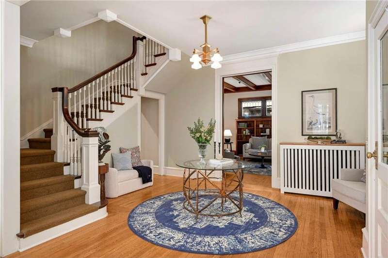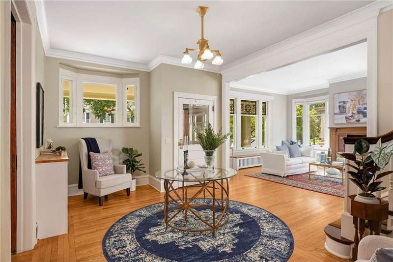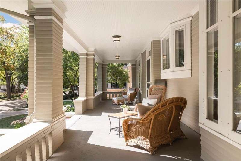 LOCATION, location... Nestled back on a beautiful over-sized lot overlooking Lake of the Isles, this home is just steps from Mpls' award-winning park & trail system, yet only 10 min from DT. Designed by renowned architect, Harry Wild Jones, and meticulously maintained for 116 years, this home exudes quality & elegance. Main level highlights: beautiful open staircase; chef's kitchen w/ atrium-style dining, walk-in pantry, & prof appl; custom oak mudrm; sun-filled dining rm w/ orig clay flr tiles; Leaded French doors; cozy library; formal living room w/wood-burning FRPL. Noteable is the seamless access from the dining rm to the bluestone patio & terrace. The outdoor living spaces offers mature gardens (w/water feature), plus, the perfect grassy area for kids & adults alike. Note the clever bike + board storage under the terrace for EZ access to LOTI & trails. The 2nd & 3rd floor offers tree-top lake views and hosts 5 bedrooms (including the luxe primary suite), an office, 4 thoughtfully appointed bathrooms, 2 charming porches, & vast "attic" storage. Rounding out this fine home is the lower-level hang-out space (w/gorgeous limestone walls), a reno 3/4 tiled bath, laundry, & storage. MOVE IN and ENJOY!