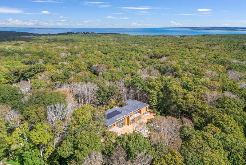 This refined modern is unparalleled. Set on 1.67 acres within the coveted Bell Estate in Amagansett and bordering over 50 acres of reserve, the setting affords exceptional privacy and a locational advantage you will love. A perfectly positioned residence just minutes to Amagansett's Main Street, the ocean, and the bay. Meticulous execution, thoughtful design, and noticeable attention to detail throughout this new construction, the results showcase natural light, embrace the surroundings, and seamlessly blur the lines between indoor/outdoor living. The minimal exterior offers clean lines and texture, beginning with its vertical grain clear cedar siding, custom-milled cedar screens and floor-to-ceiling windows and doors. A dramatic architectural overhang at the rear elevation filters the light and adds rhythm to terraces and balconies below. A stunning custom 50' gunite pool with lap lane, spa, and sun shelf anchors the backyard along with a pergola-covered lounge offering welcoming shade on a hot summer's day. Mature native landscaping enhances and surrounds the abundance of exterior living space with over 3,000 square feet of terraces including a covered outdoor kitchen and dining area, bluestone patios, Ipe balconies, and an upper sundeck. Inside, clean lines meet sumptuous and enduring materials. From the second-floor mezzanine one can fully appreciate the impressive main living area. A 20' vertical clear cedar wall defines the dining area, while a double-height window wall brings the outdoors in. A STUV wood-burning fireplace encased in statuary marble is the perfect transition from the great room to the spacious den. Features include 7' wide white oak flooring, 9' interior doors, recessed silo lighting, and a striking steel-and-oak mono-stringer staircase. The home spans approximately 10,000 square feet across three finished levels. Eight ensuite bedrooms include a first-floor primary suite, second-floor primary, and junior primary. All feature walk-in closets, floor-to-ceiling glass sliding doors, and access to private or semi-private outdoor spaces. Spa-caliber bathrooms, with full-height natural stone and marble tile, cedar accents, floating white oak vanities, brushed nickel fixtures, Robern medicine cabinets, freestanding tubs, and integrated custom mirrors with vertical lighting. Natural light continues all day in the fully finished lower level with an east and west facing sliders, plus oversized windows. Here indulge in your own private wellness suite including a mirrored fitness studio with ballet barre, cedar-walled sauna with glass panel, separate steam room, and custom stainless steel Reiki soaking tub. Additional amenities on this level include a modern wine room, wet bar, media space, and expansive recreation lounge. Back on the main level, the kitchen is a work of art and is made to entertain. The Henrybuilt kitchen offers refined aesthetics with exceptional function; an oversized fluted white oak island, statuary marble countertops and backsplash, and integrated Gaggenau appliances, including wine column, induction cooktop, wall ovens, and fridge. A discreet auxiliary kitchen offers matching finishes, Miele and Gaggenau appliances, a gas range with custom steel hood, coffee bar, and utility island. Adjacent mudroom, side entrance, and laundry room add everyday convenience. Engineered and fully equipped for longevity and efficiency, the home features a Lutron RadioRA smart system for app-controlled HVAC, lighting, AV, and pool. All bedrooms and living spaces are AV/media ready. Additional green features include spray foam insulation, whole-home water filtration, a 10kw solar array, and a HERS-rated energy performance build. Set for completion late fall 2025 within Bell Estate in Amagansett. Listing ID: 923878