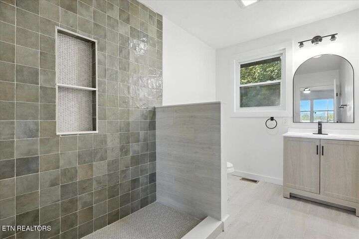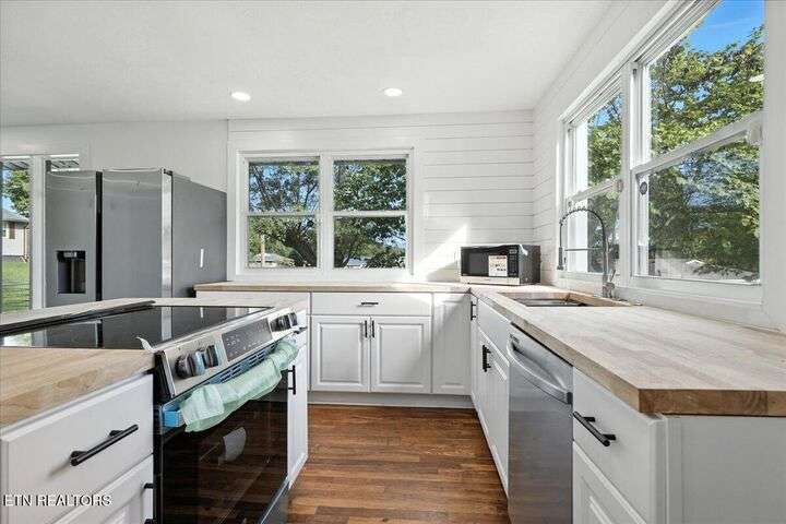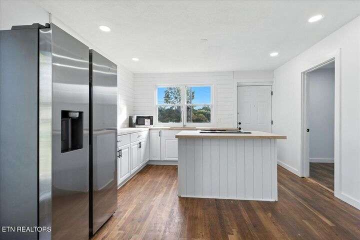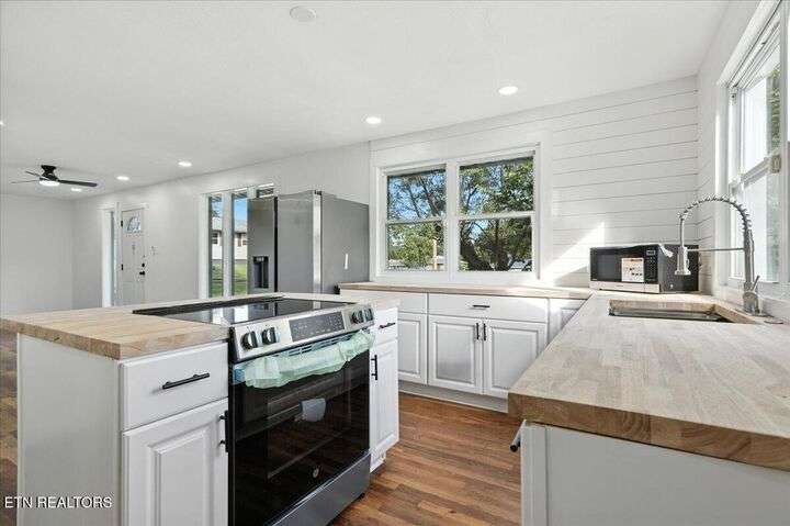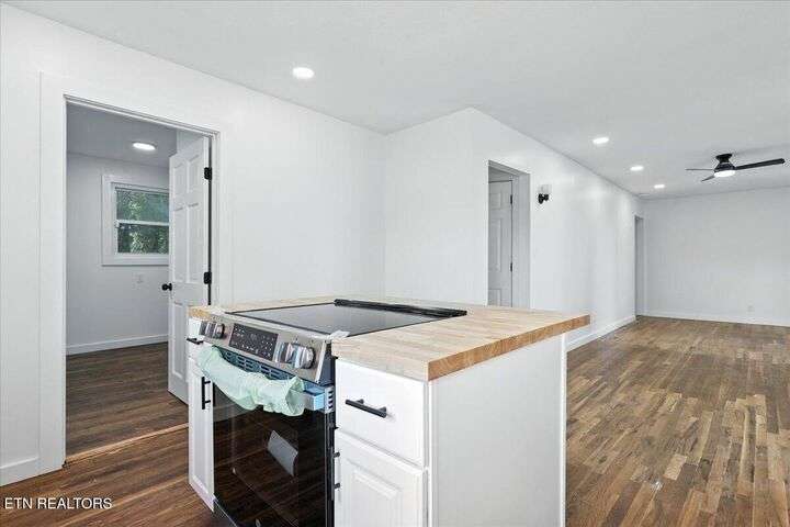 HUGE price reduction!!! Brand new kitchen cabinets with stainless steel appliances Updated electrical panel New ductwork throughout New interior doors Completely remodeled ranch-style home in Oak Ridge featuring 4 bedrooms and 2 beautifully updated bathrooms. The open-concept kitchen and living area boasts brand-new stainless steel appliances, custom cabinets, and a stunning island with a built-in stove overlooking the living space. The primary suite includes a fully renovated bathroom and a spacious walk-in closet, while the additional bedrooms are bright and generously sized. Both bathrooms have been completely remodeled with modern finishes. Original hardwood floors have been refinished throughout, adding warmth and character to the home. A separate laundry room provides extra convenience, while the private backyard and welcoming front yard offer plenty of outdoor space to enjoy. Ideally located just 3 minutes from Oak Ridge's shopping and restaurant district, this home blends modern updates with timeless charm in a highly desirable area. Buyers and buyer's agent to verify all information.