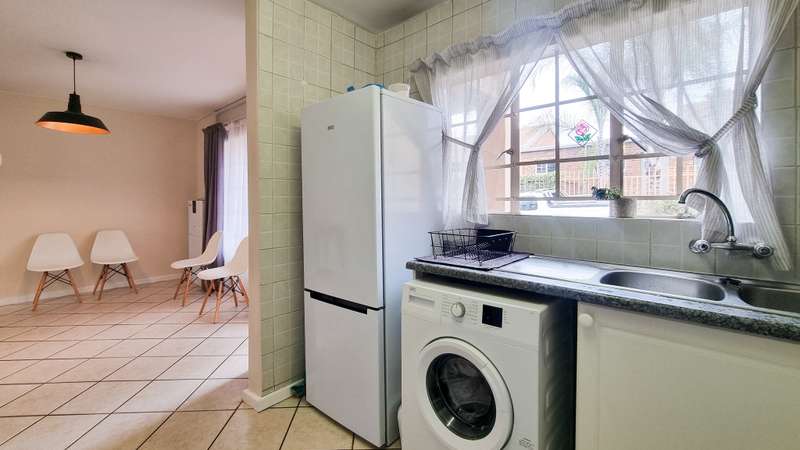 Welcome to this charming ground floor 2-bedroom, 1 full bathroom apartment in Amberfield – freshly updated and move-in ready! With its spacious design, private garden, and modern upgrades, this home offers both comfort and convenience. ? Features you’ll love: Freshly painted interior New carpets in both bedrooms Bathroom & kitchen tiled to the ceiling 8kw inverter installed Spacious patio with railings overlooking a private garden Weekly garden services included Security doors & secure parking Double garage with electronic doors leading directly into your garden Optional 3rd garage (18m²) with levy of R364 p/m This unit is the perfect balance of style, security, and easy living – ready to welcome its new owner. ?