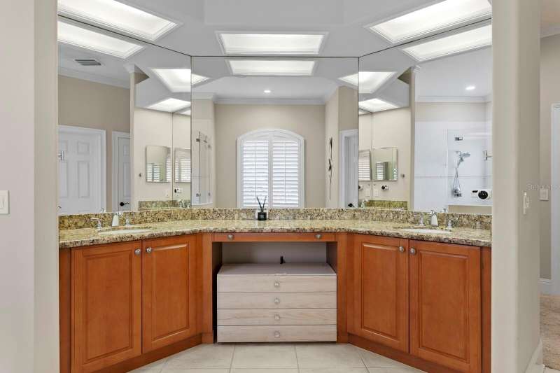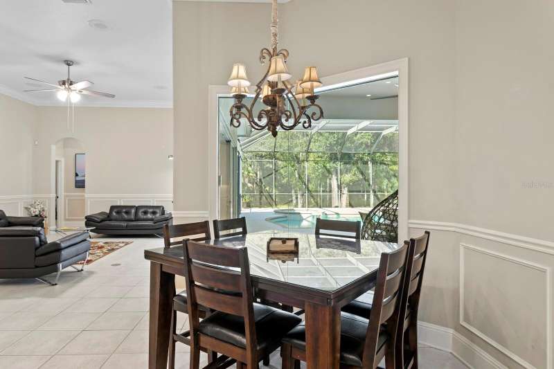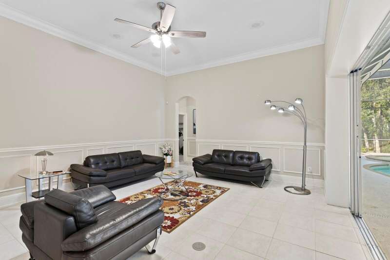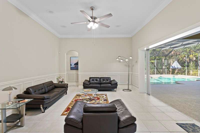 A showcase estate with sweeping conservation views! Nestled in the heart of Tampa Palms within the gated enclave of Whitehall, this custom Hannah Bartoletta residence is positioned on a massive conservation lot measuring 3/4 of an acre with sweeping conservation views. Boasting 6 bedrooms, 5 baths, a spacious bonus/game room, resort-style pool and outdoor kitchen. . Lovingly maintained and thoughtfully upgraded, the home boasts fresh exterior paint (2020), a whole-house water filtration system (2020), updated windows in the office/bedroom, dining, and laundry rooms (2022), a resurfaced pool (2023), and so much more. From the shaded canopy of oaks, the courtyard entry and oversized 3-car garage set the stage. Inside, the formal living and dining spaces highlight breathtaking conservation views and are enhanced by a wood-burning fireplace, crown molding, hand-scraped hardwood floors, plantation shutters, and abundant natural light. The chef’s kitchen is designed for both function and beauty with 42" maple cabinetry, granite countertops, top-tier stainless steel appliances including a newer gas cooktop and double ovens, wood-paneled Sub-Zero refrigerator, walk-in pantry, and custom wood vent hood. A casual dining nook overlooks the serene conservation while the kitchen flows seamlessly into the family room with 8-foot sliding glass pocket doors opening onto the lanai. The private owner’s suite features coffered ceilings, plantation shutters, dual walk-in closets, and a spa-inspired bath with dual vanities, granite counters, maple cabinetry, a garden tub, and separate shower. A flexible office/6th bedroom includes a large walk-in closet and full bath. Two bedrooms share a Jack-and-Jill bath, a fourth has its own en suite, and upstairs you’ll find a spacious game room with a built-in bar plus another private bedroom and bath. Outdoor living takes center stage with an expansive lanai featuring a sparkling pool, heated spa, outdoor kitchen, and multiple covered sitting areas, all framed by lush conservation views. Recent enhancements include a tankless water heater, new pool deck finish, updated fencing, epoxy-coated garage floors, new screening, and modern ceiling fans. As a resident of Whitehall, you’re just a short walk to Club Tampa Palms, an exclusive members-only amenity center with a fitness facility, locker rooms, sauna, 3 pools with waterslide, tennis, and basketball. Membership is included in your HOA fees. Conveniently located near top-rated schools, Moffitt Cancer Center, Advent Hospital, USF, and I-75. Truly, this home has it all. Welcome home!