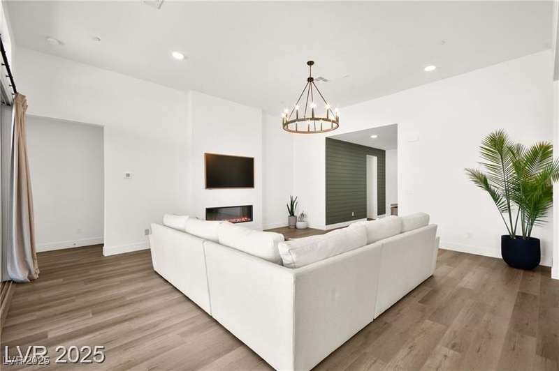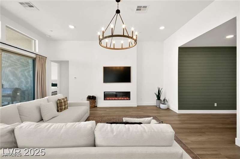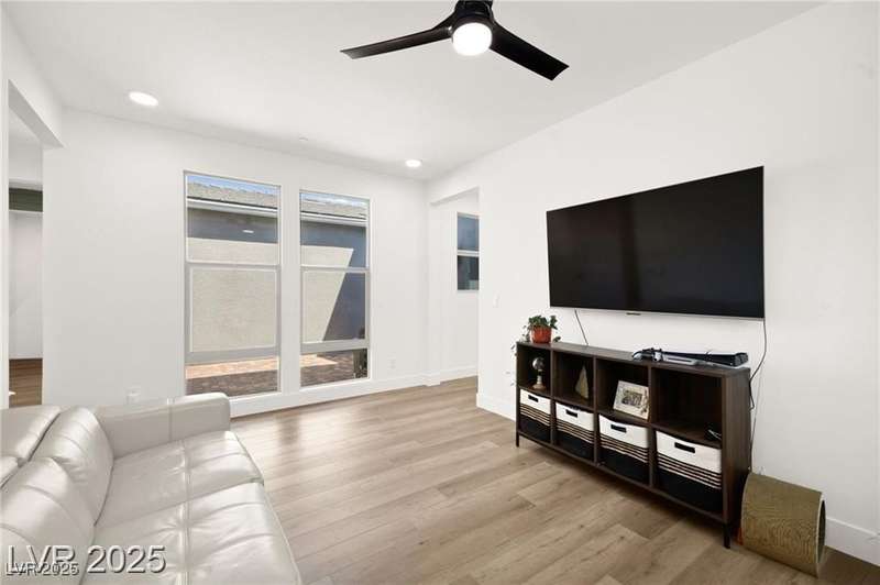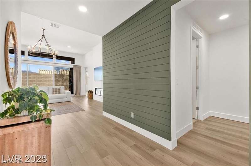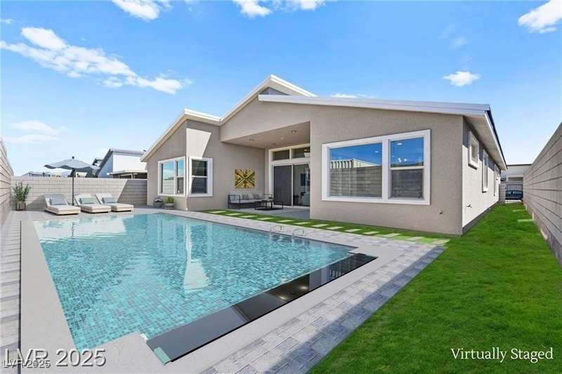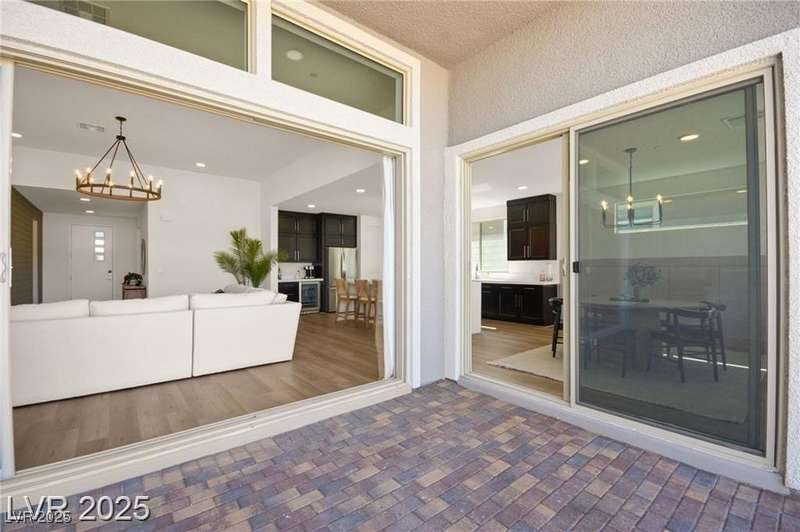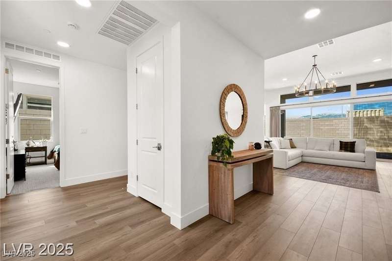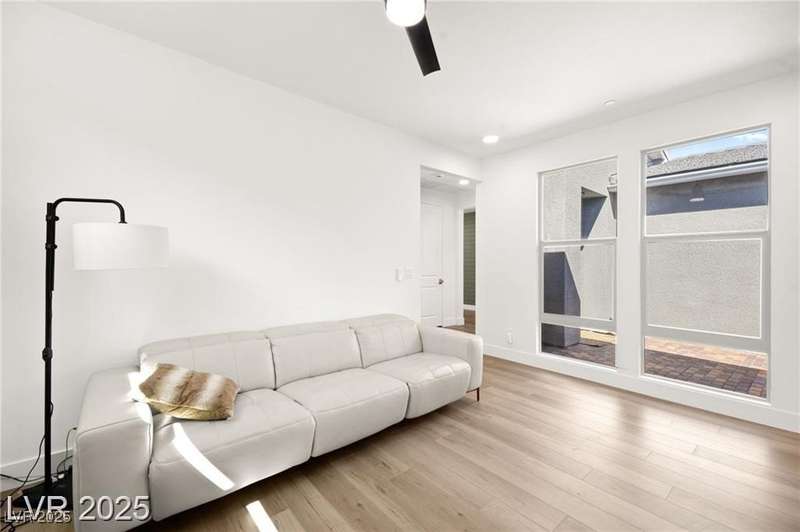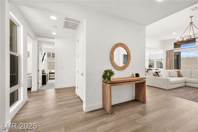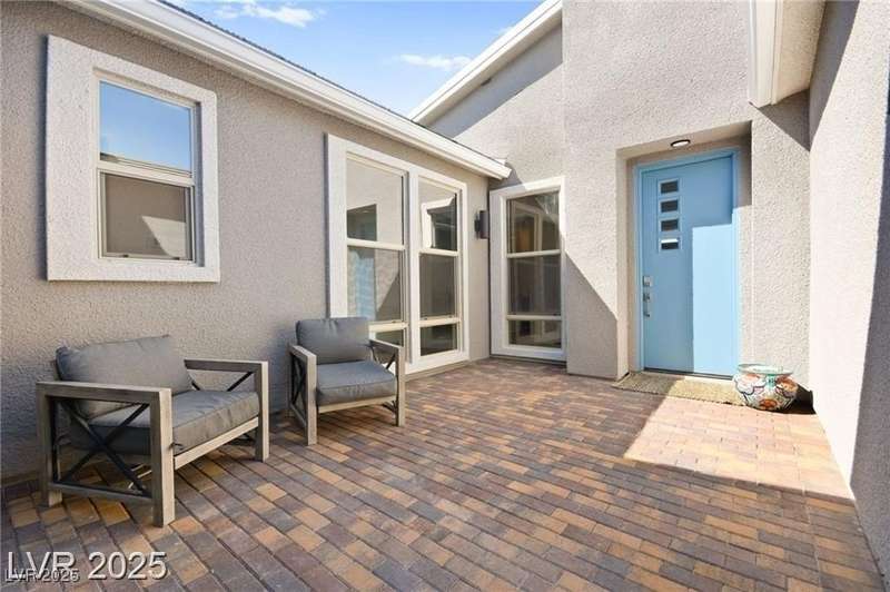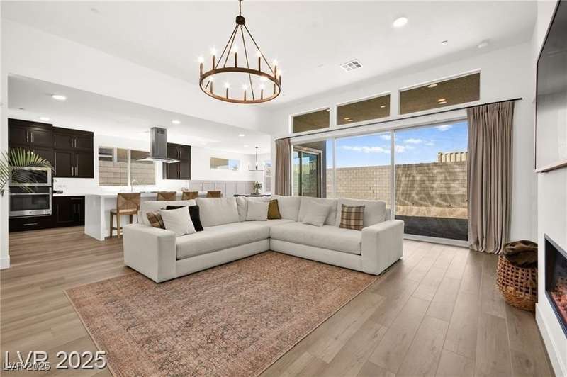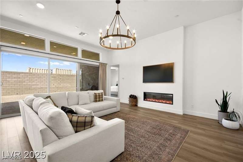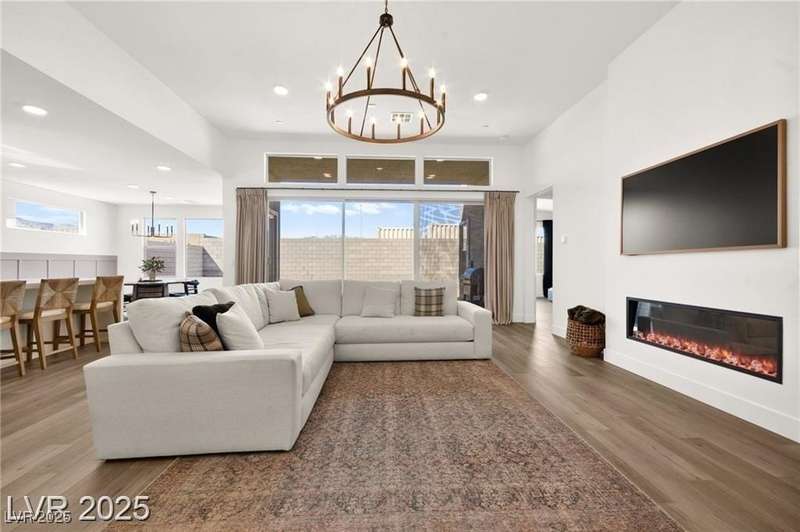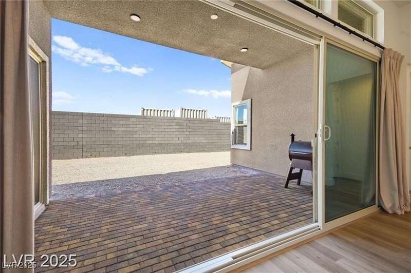 Welcome to this new Tripointe home in the Alpine Ridge gated community of Kyle Canyon. Completed in June 2024, this Plan 3 model features $126,000 in upgrades and is move-in ready. A private courtyard leads to the spacious great room with high ceilings, fireplace, and sliding glass doors to the backyard. The chef’s kitchen boasts a large island with quartz countertops, wine fridge, and walk-in pantry. The oversized primary suite offers a luxurious bathroom and massive walk-in closet. The laundry room is located off the closet, with access to the garage. The 3-car tandem garage has ample storage, and versatile flex room between the three secondary bedrooms. Other upgrades include ceiling fans, light fixtures, surround sound speaker prewires, an 8-stage water filtration system, holiday light outlets on eaves of the roof, & stylish wall paneling. The unfinished, pool-sized yard is ready for your personal touch. Don't miss out on this opportunity in a growing, desirable?????????? community!