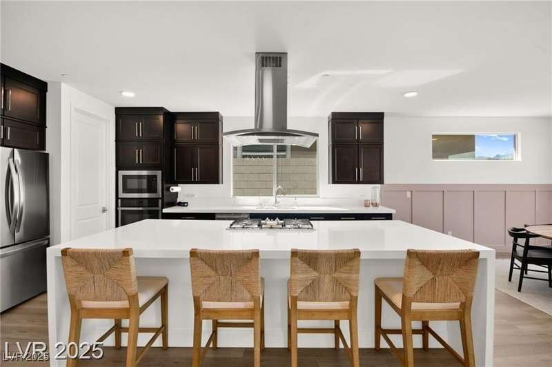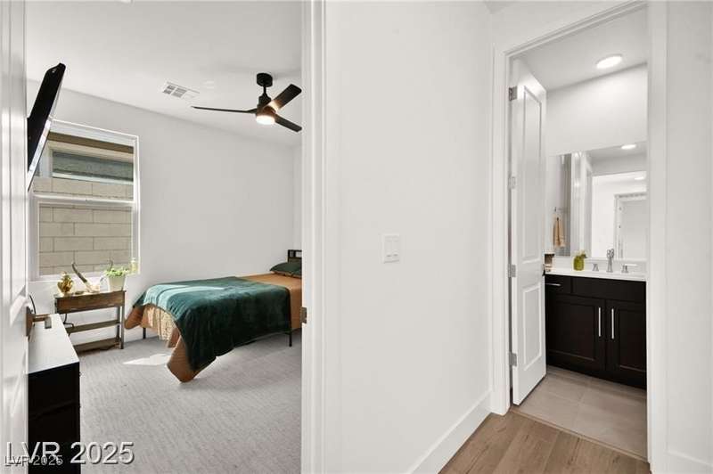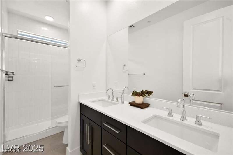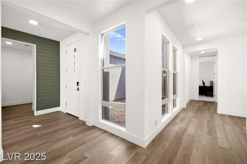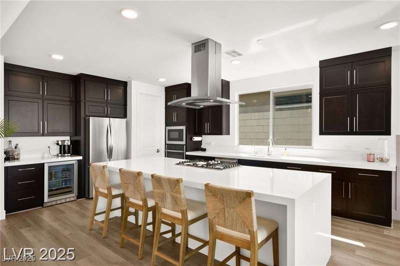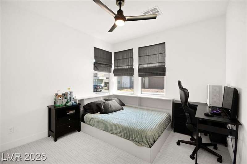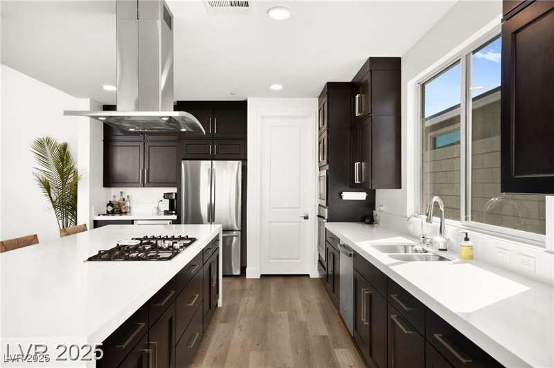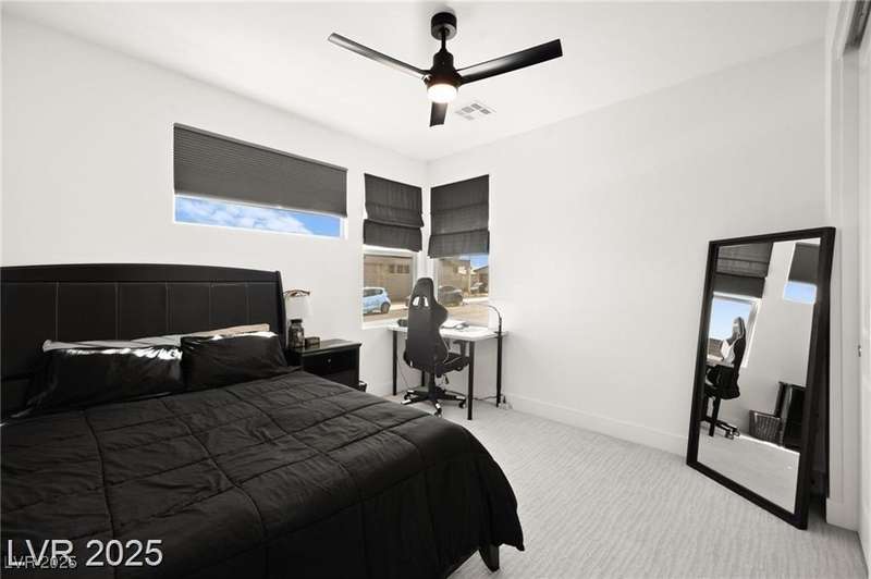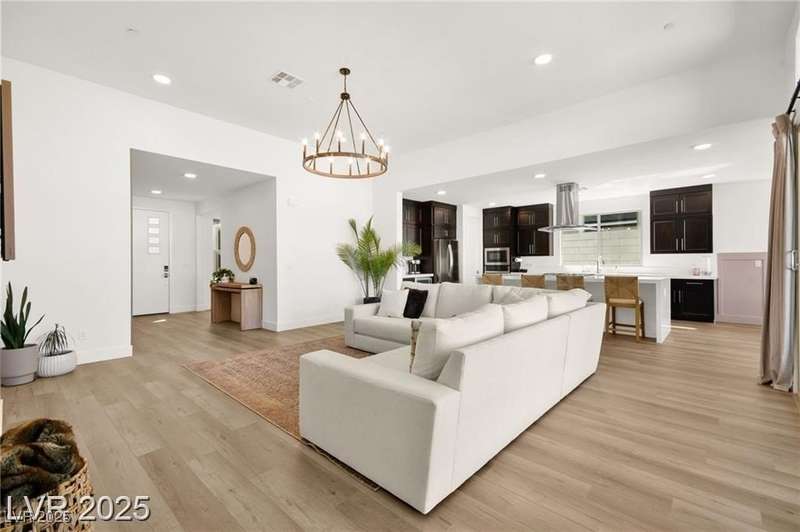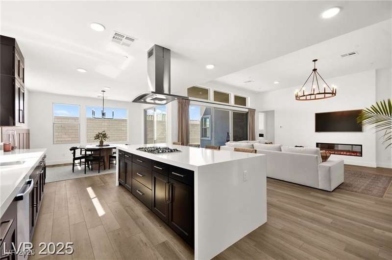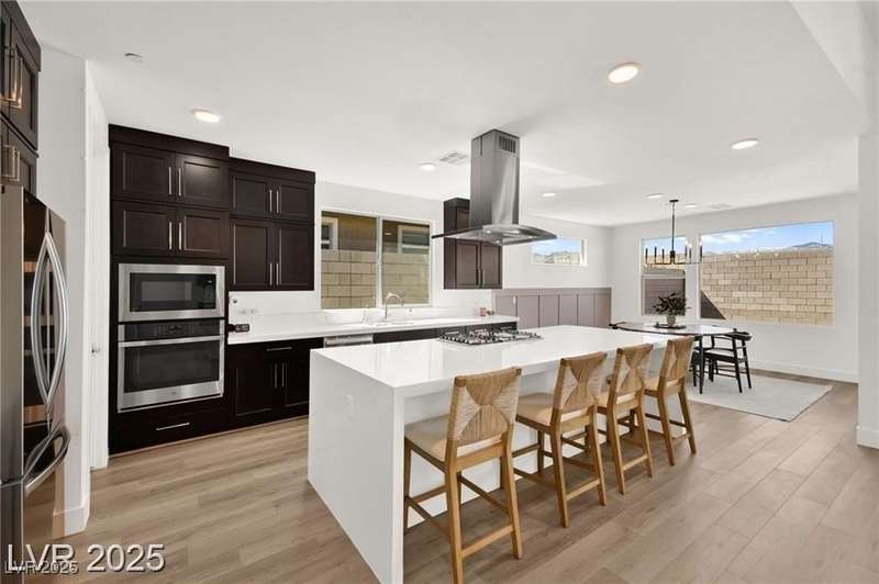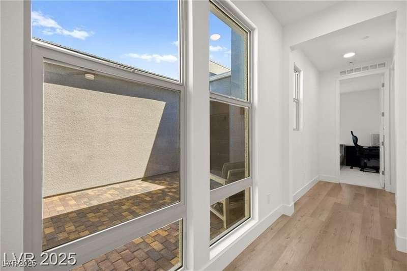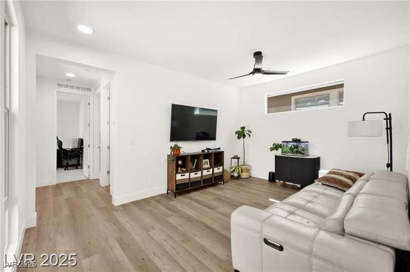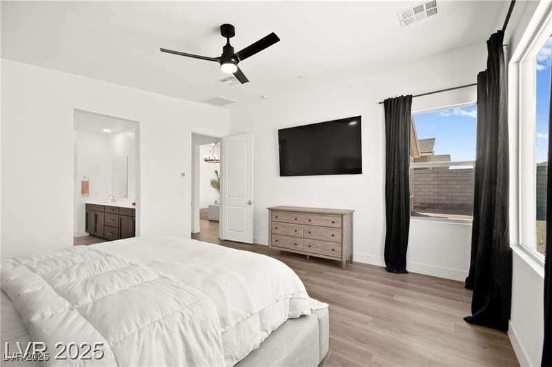 Welcome to this new Tripointe home in the Alpine Ridge gated community of Kyle Canyon. Completed in June 2024, this Plan 3 model features $126,000 in upgrades and is move-in ready. A private courtyard leads to the spacious great room with high ceilings, fireplace, and sliding glass doors to the backyard. The chef’s kitchen boasts a large island with quartz countertops, wine fridge, and walk-in pantry. The oversized primary suite offers a luxurious bathroom and massive walk-in closet. The laundry room is located off the closet, with access to the garage. The 3-car tandem garage has ample storage, and versatile flex room between the three secondary bedrooms. Other upgrades include ceiling fans, light fixtures, surround sound speaker prewires, an 8-stage water filtration system, holiday light outlets on eaves of the roof, & stylish wall paneling. The unfinished, pool-sized yard is ready for your personal touch. Don't miss out on this opportunity in a growing, desirable?????????? community!