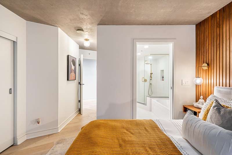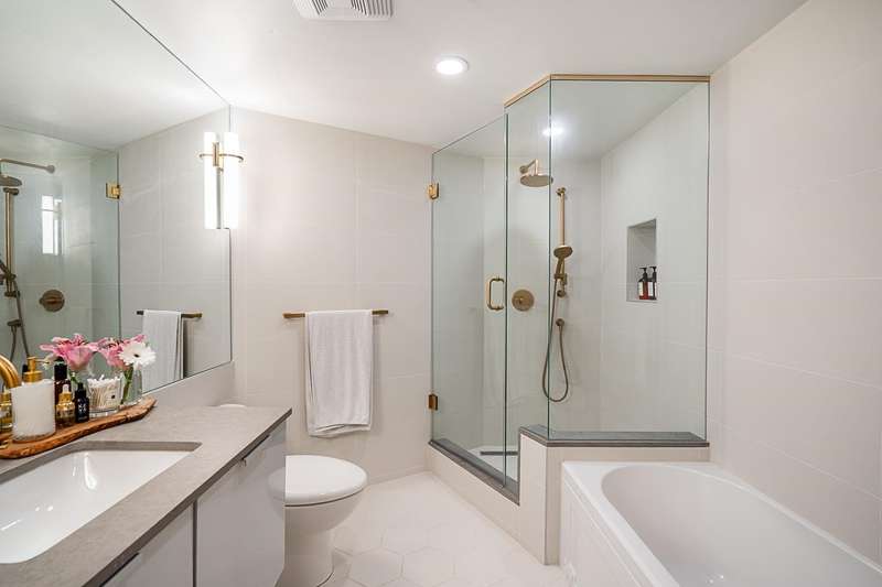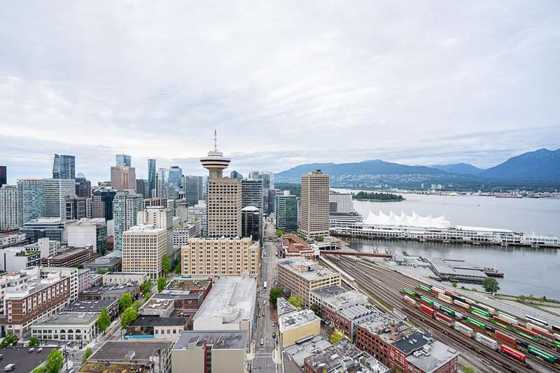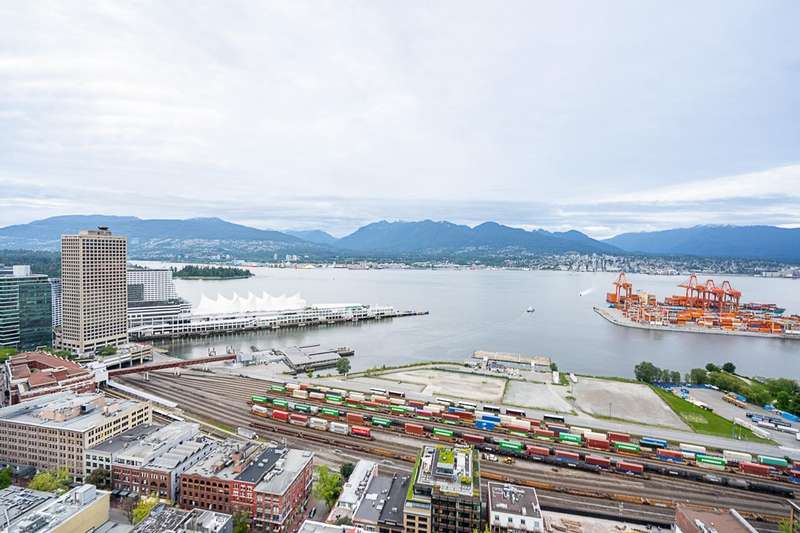 Imagine calling the historic heart of Gastown home, residing in one of Vancouver's most architecturally stunning buildings, WOODWARDS. This beautifully renovated corner unit offers 2 bedroom and 2 bathroom, seamlessly blending elegance, serenity, and vibrant city life. Features include polished concrete ceilings, high-end finishes, custom wall designs, and an open-concept kitchen with a spacious island. Natural light pours in through large windows, leading to a roomy, airy balcony. Each bedroom includes its own private ensuite, with the primary suite offering a luxurious deep soaking tub. Exceptional amenities on the 42nd floor-outdoor hot tub, gym, party room, outdoor BBQ area. AIRBNB ALLOWED & 3 parking stalls-extra rent income! Steps from shops, dining options, Waterfront Skytrain.