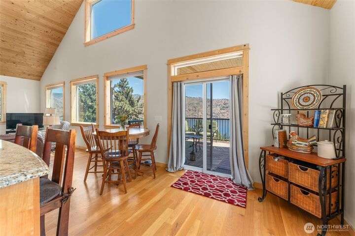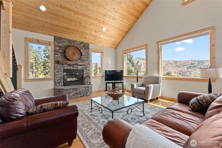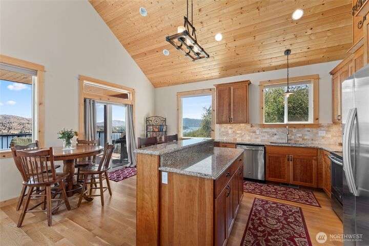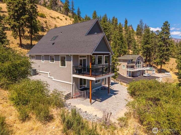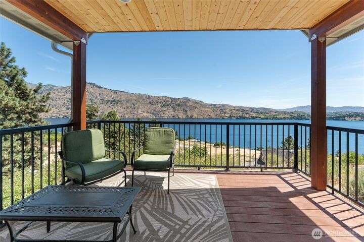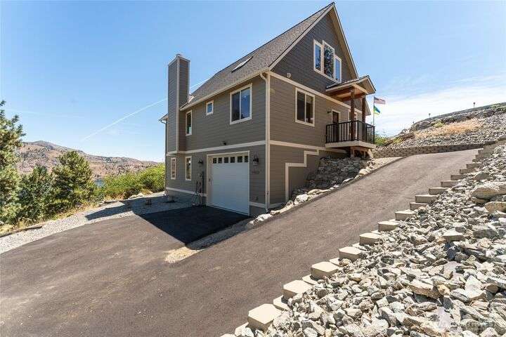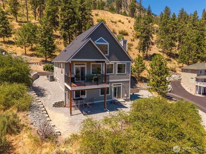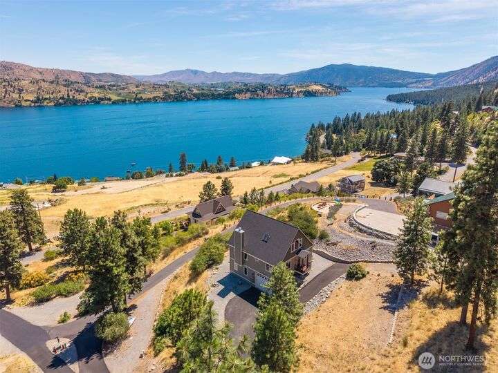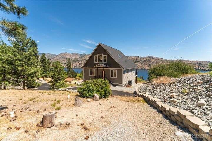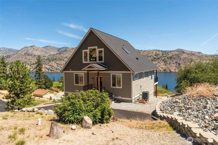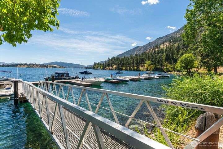 This stunning, like new, 3 br/3ba view home in the serene Morning Sun Estates offers contemporary elegance and community waterfront benefits on Lake Chelan. Great room and kitchen features white oak flooring, custom cherry cabinets, granite countertops and a cozy stone wood burning fireplace. The main floor has 2 bedrooms, including the primary with an en suite bath. Downstairs, enjoy the versatile rec room, an additional bedroom and full bath. Extra long 30' garage, ADDITIONAL PARKING on lower part of lot, and low maintenance landscaping. WF amenities include 600' of waterfront shared by 30 lots, parking, large grass swim area, shade trees and picnic tables. Marina features boat slips, buoys, moorings whips, restrooms and ice machine.