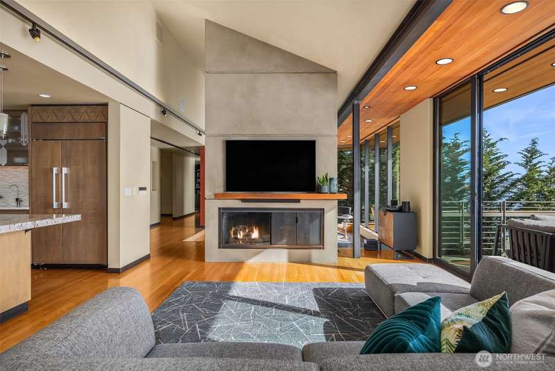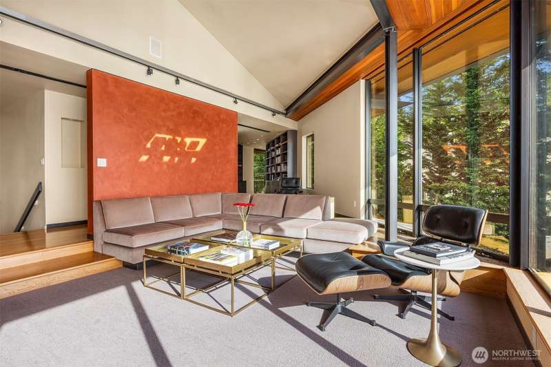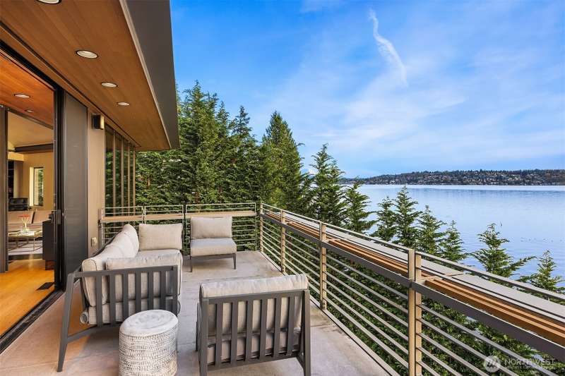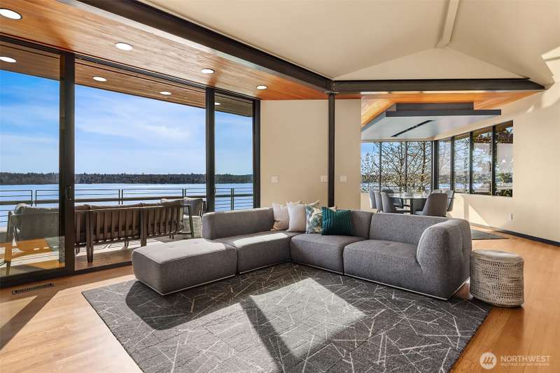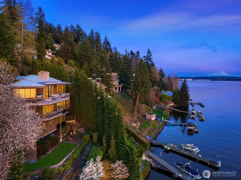 Olson Kundig design set upon the shores of Lake Washington. Light finds you in every space & the views are inescapable in your modern jewel-box home of glass, steel, wood & concrete, artfully reimagined by world renowned architect, Jim Olson, in 2008. Mt Rainier & the Olympics are your backdrop for all-day sun along 65' of coveted West-facing Mercer Island waterfront with new dock in 2017 & boat lift. Enter near waters edge to vaulted gathering spaces with seamless indoor/outdoor flow for social nights by the lake, quiet & intimate zones for retreat & relaxation, primary suite & two additional bedrooms share their own floor centered around a communal family room hub, & lakeside-level entertaining room with additional bedroom & 3/4 bathroom.