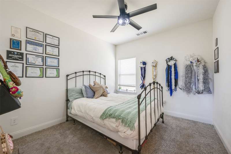 Step inside to a thoughtfully designed layout two story 4 bedroom, 3.5 bath, designated office, game room, soaring ceilings in living room with designer gas fireplace, mud room, 3 car tandem garage with sink and an extra bump out for your own personal gym or workshop. Outdoors, the oversized backyard is a true gem for the kids to really run and play. It even has a dog drinking fountain for your furry friends. One of very few rare finds with large yard, extra space in garage, and tons of storage areas in this beautiful home in the serene Seventeen Lakes Community. This home boasts everything you'd expect from standards in a high end home. The chef inspired kitchen boasts coffee or wine bar with cabinets, quartz countertops with expansive island, deep pot and pan drawers, beverage cup washer on the counter, crisp white kitchen cabinetry with soft closed drawers, double oven, gas cooktop, and a huge walk in pantry, making it a culinary dream. The oversized ensuite includes a luxurious rectangular jetted tub perfect for relaxing evenings after a long day at work. Wood like ceramic tile throughout home except in some areas which have carpet, with granite counter tops in all baths. Amenities include stocked catch and release fishing lakes, two pools, splash pad, two playgrounds, 2 stainless steel grills for all your BBQ desires, walking and biking trails, fantastic views and breathtaking sunsets throughout the community. The location is close to shopping, Tanger Outlet Mall, Buc-cee's, historical and quaint Unique Dining Capital of Texas in Roanoke, farmers markets, golf courses, and so much more. Close to several major freeways and DFW airport as well as Charles Schwab and Fidelity. This beautiful home is ready for you today to move-in. This home truly has it all-----style, space, and sought after location. Don't miss out on this one!