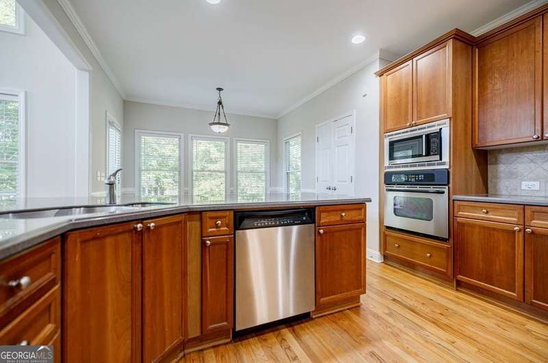 Don't miss the opportunity to lease this light-filled 4-bedroom, 3.5-bath brick home in the sought-after Hedgerose neighborhood in Kennesaw. This elegant residence features a primary suite on the main level with a spa-style bath, three additional bedrooms upstairs, a gourmet kitchen with solid surface countertops and stained cabinetry, a formal dining room, open family room with gas fireplace, formal living room/office, and an unfinished basement. The home includes a side-entry 2-car garage and comes with washer and dryer. Recent updates include fresh paint, brand new carpet and professional cleaning. Located near top-rated schools-Frey Elementary, Durham Middle, and Harrison High-and close to shopping, dining, and major highways, this home is move-in ready. Swim/Tennis community. Pets are not allowed.