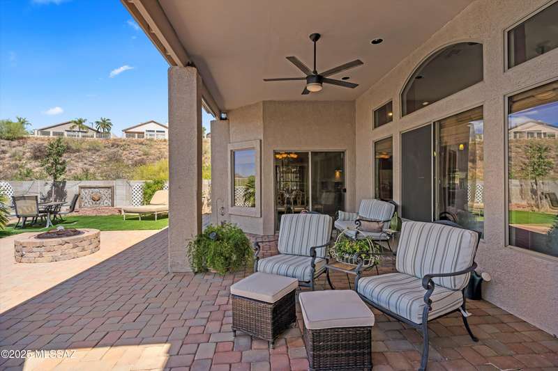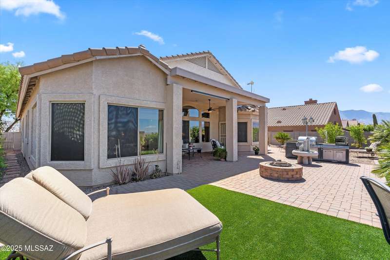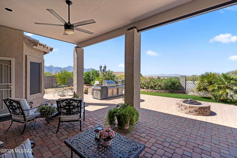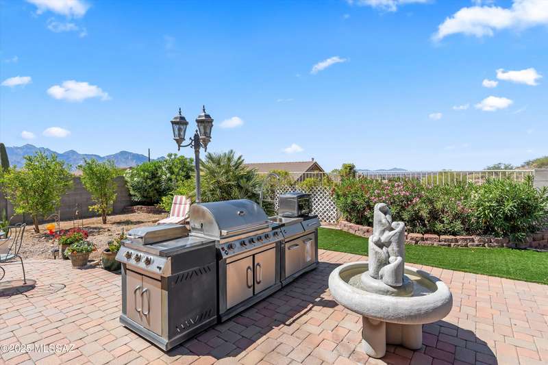 At 3,500 ft elevation, this Catalina Hills hilltop retreat offers stunning panoramic views and unmatched flexibility. Ideal for multigenerational living or income potential, it features a fully independent guest/in-law suite with private entrance, kitchen, laundry, and living space. The main home boasts expansive living areas, a chef's kitchen, and sweeping vistas. Outdoors, enjoy low-maintenance landscaping, a firepit, fountain, lighting, and a full outdoor kitchen. Privacy, luxury, and versatility--this home has it all!