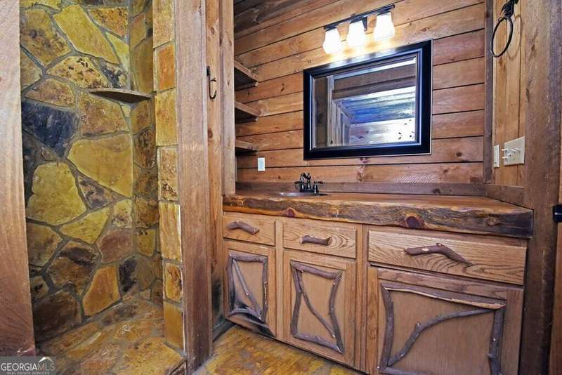 THIS ONE HAS IT ALL!!! Rustic luxury in the heart of the North Georgia mountains! This 3BR/3BA cabin offers long-range views, a roaring creek, and a private pond access for fishing-just minutes from the Toccoa River and Swinging Bridge, and 20 minutes to downtown Blue Ridge. Enjoy 3 fireplaces, a spacious open layout, and beautifully crafted indoor/outdoor living areas. WRAP AROUND PORCH! The fully remodeled Keith Sumner basement adds a touch of modern elegance. With all-paved access, privacy, and high-end finishes, this retreat is perfect for luxury mountain living, vacation rental income, or the ultimate fishing escape.