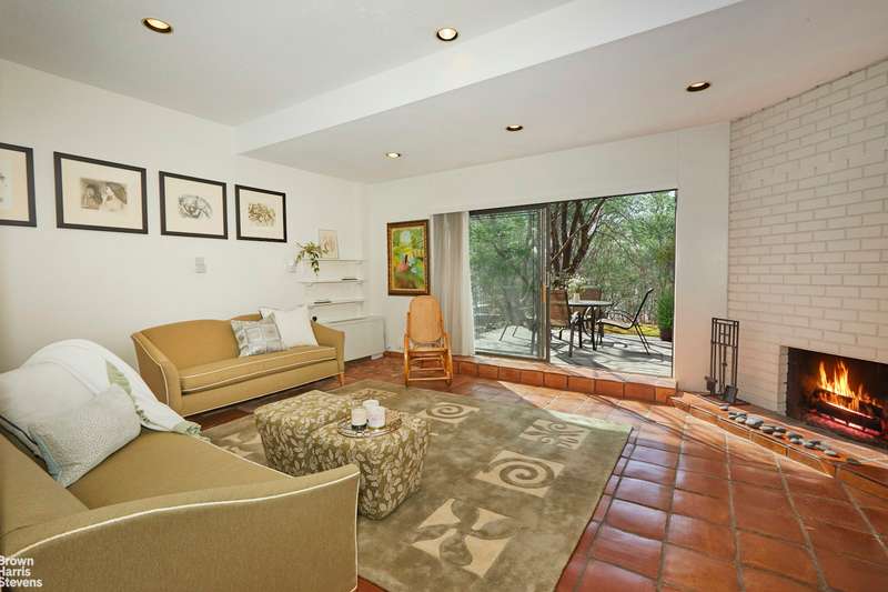 The lower level opens to a beautifully landscaped private garden with natural foliage and serene views of the Hudson and Palisades. A corner wood-burning fireplace enhances the cozy atmosphere-perfect for movie nights. Sliding glass doors lead to a rear deck, ideal for a grill setup, and equipped with a water hose connection for gardening. This level also features a windowed fourth bedroom or home office, a laundry room, and a full bathroom.