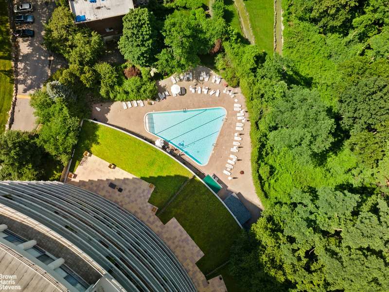 One of just 19 exclusive townhouses-which, together with a 15-story high-rise, comprise Hayden on the Hudson-this mid-century modern condominium complex includes two tennis courts, a swimming pool, fitness room, garage, and 24-hour concierge and doorman services.