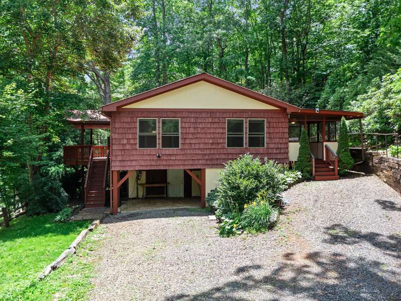 Welcome to the South Toe Community of Yancey County, minutes to Mt Mitchell State Park (highest peak east of the Mississippi) and the majestic Blue Ridge Parkway. View the gorgeous South Toe River and sprawling Appalachian Mountains, every time you go home! Nestled on a quiet dead end rd, and small secluded community, this chalet-style home is beautifully set among trees, landscaped with a variety of beautiful native flora. Enjoy natures sights and sounds, sitting on the huge, partially covered, front deck or the screened back porch! Soak among the Mountain Laurels, Rhododendrons and night skies in the privately set Hot Tub! The home boasts a large, bright, open family room, with cathedral ceiling and gas fireplace. Offers comfortable, 3bd 2 bath, with Primary En suite. A large charming dining room, off the nice sized kitchen is a plus! Unfinished basement is great for storage or expansion. The flow of the house and outdoors is a peaceful paradise, great for entertaining guests! Make this home your retreat!