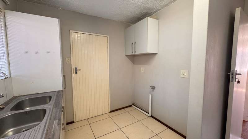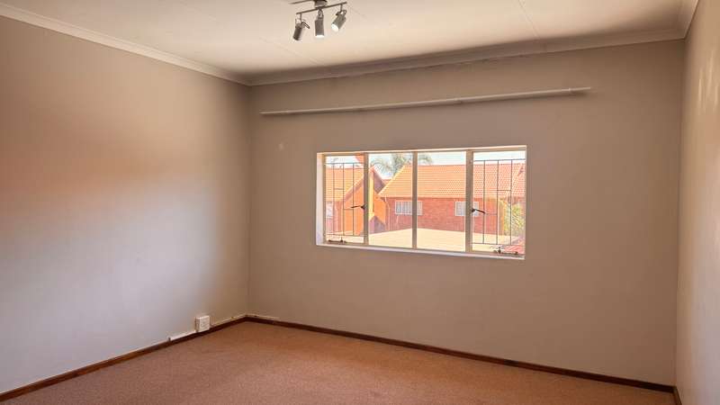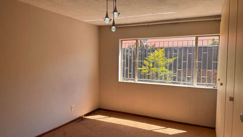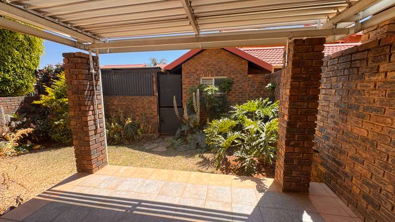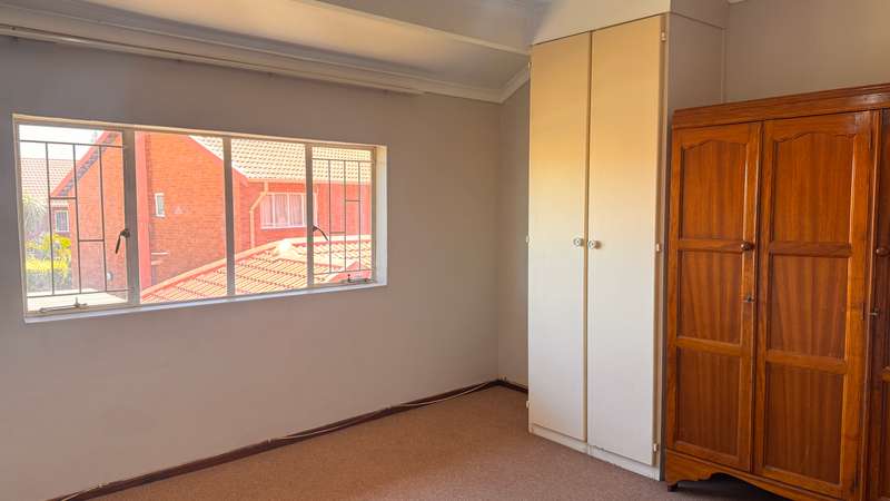 This well-sized 3-bedroom, 2-bathroom duplex is situated in the popular La Paradise complex in Garsfontein. The layout includes a large open-plan lounge and dining area with lofty ceilings, plus an upstairs living space ideal as a TV room or study. The main bedroom is located downstairs with an en-suite bathroom featuring a bath, basin, and toilet. Upstairs, two additional bedrooms share a second bathroom with a walk-in shower. All bedrooms have built-in cupboards and fitted carpets. The functional kitchen is fitted with melamine cupboards, Formica countertops, an upright stove, and offers space for a double-door fridge and top loader washing machine. A breakfast nook and a storeroom add convenience. A covered patio with a louvered roof opens onto your own private, walled garden—ideal for outdoor relaxation. The unit also includes a double enclosed steel carport and features good security with electric fencing, and burglar bars Located near top schools such as Woodhill College and Hoërskool Garsfontein, and just minutes from shopping destinations including Boardwalk Lakeside, Dis-Chem Centre, and Atterbury Décor Centre.