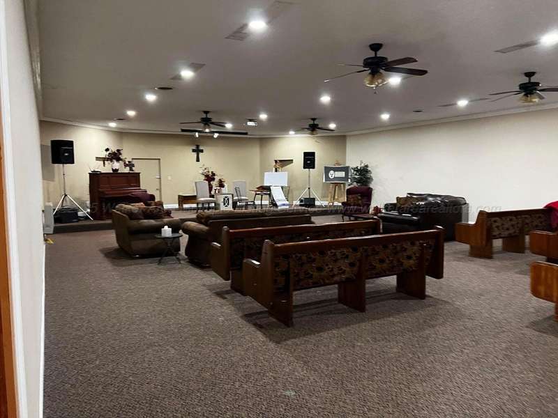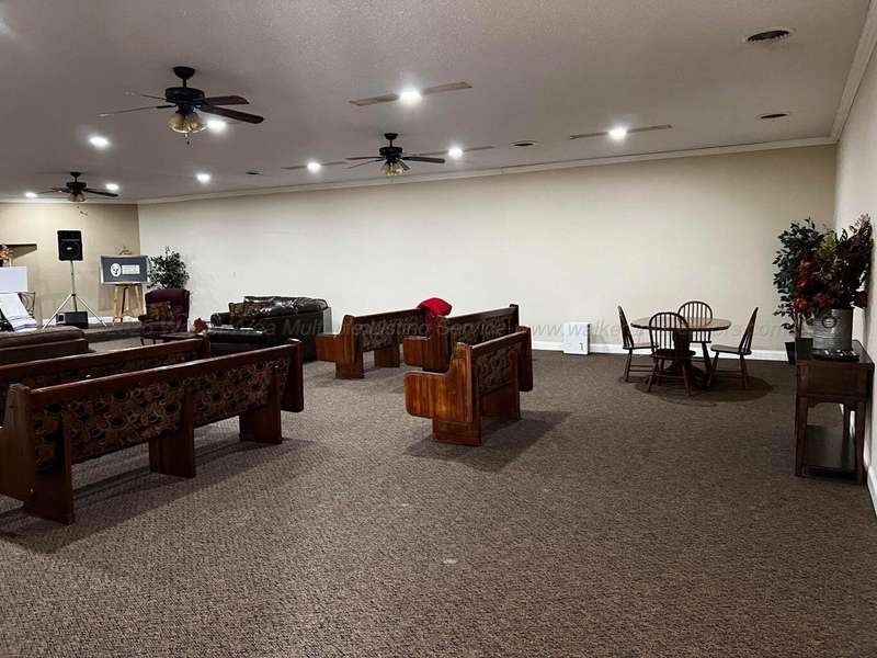 Rare Opportunity in this community! Commercial Building with acreage. It can continue being used as a religious organization or it would make a great place for a Venue. So many possibilities. This updated church has a large sanctuary, office space, 3 classrooms along with a large dining hall and kitchen with 2 bathrooms, a large pantry, lots of parking and a large detached building.