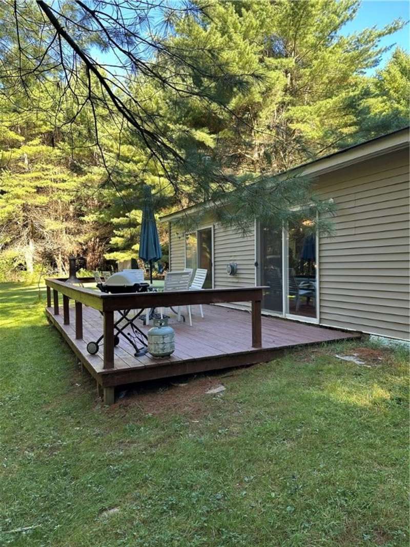 Nestled on a sprawling 25-acre parcel directly across from NY State Land, this 2009-built ranch offers the perfect blend of comfort, efficiency, and wilderness charm. With two cozy bedrooms and one full bath, this turnkey retreat is ready for you to move in?furniture and all. All of the conveniences you need Wi-Fi, 200 Amp electrical service powers the home, supporting modern living and future upgrades.Inside, you'll find a Vermont Castings wood stove that anchors the living space with warmth and character. The open layout between the living room, kitchen and dining room is very inviting and warm - great for entertaining. Step through the sliding glass doors onto a spacious deck?ideal for morning coffee, evening stargazing, or entertaining guests surrounded by nature's serenity. The home is built on a monolithic slab foundation with an impressive 18 inches of insulation beneath, ensuring year-round energy efficiency. Constructed with 2x6 framing, the walls and attic are packed with extra insulation, and manufactured trusses are engineered to handle heavy snow loads with ease.Whether you're seeking a peaceful full-time residence, a weekend escape, or a basecamp for outdoor adventures, this property delivers. With direct access to state land, the opportunities for hiking, hunting, and exploring are endless. Call today for your appointment!
