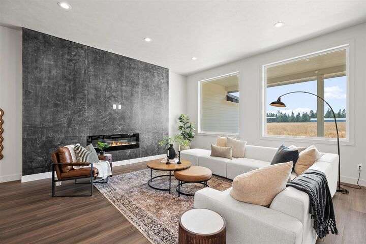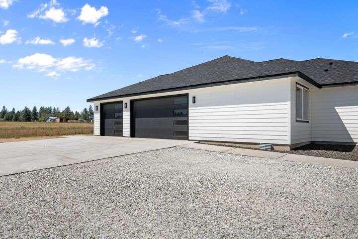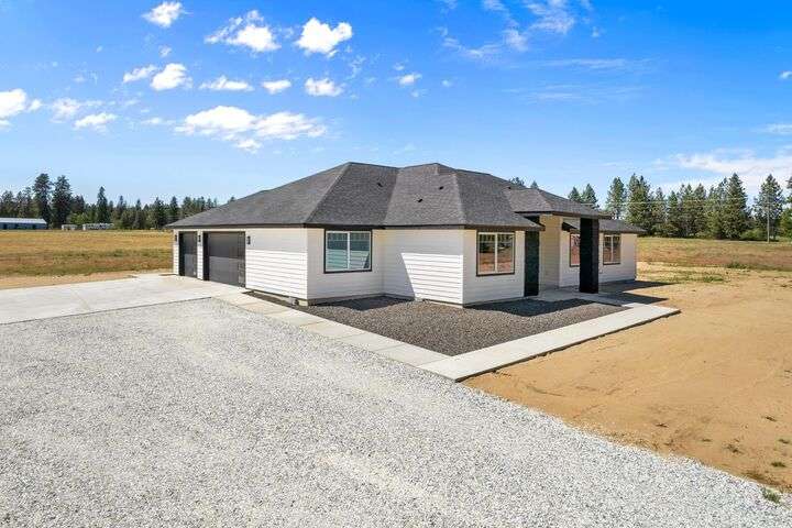 New modern designed, 3 bedroom plus office, 2.5 bathroom rancher on 4.23 acres for sale minutes outside of Deer Park, WA. Located with convenient access to Deer Park to the west and Highway 2 to the East. Open great room with soaring ceilings, glossy white finished modern cabinetry, modern appliances and covered back patio area Great territorial views and no HOA or CCR's! Additional parcel can be purchased with this home. Picture of 30' x 50' shop with 12' tall doors not included in base price but can be added with concrete floor for an additional $40,000, bringing total price to $714,900. This home is within the USDA loan eligible area. Qualified buyers can get in with '0 down'. Preferred lender is offering 1% of the loan amount up to $5,000 towards buyer's closing costs.