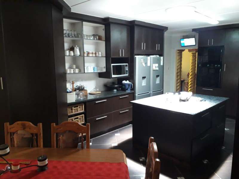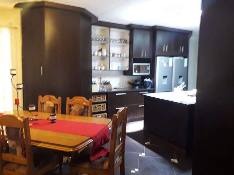 Entrance hall and lounge.Beautiful custom built designer kitchen.Laundry room. Dining room with aircon.Fridge and freezer included in sale!Three spacious bedrooms all with aircons.Full bathroom.Separate toilet.Custom designed bar including fridge! Underroof braai area overlooking the pool and patio.Neat garden.Double garage with automated doors and two shadenet parkings.Outbuilding utilised as a workroom can be converted in a granny flat.Full solar electric installation and borehole with reservoir and pump. CCTV camera system and burglar alarm.This is indeed the full house! Come have a look!