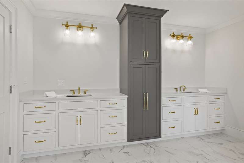 Quality craftsmanship and elegant design define this stunning 4-bedroom new construction home on highly sought-after Sunset Rock Road. The designer kitchen impresses with custom cabinetry, a 10-foot island, quartz countertops, top-of-the-line appliances, and a spacious dining area with access to the side porch. The first floor also offers a home office/flex room, a large family room with a gas fireplace, and sliders leading to a screened-in porch - perfect for enjoying fresh air year-round. A mudroom with half bath connects conveniently to the three-car attached garage. A custom staircase leads to the second floor, featuring two primary suites, each with walk-in closets and luxury baths, plus two additional bedrooms, two more full baths and a laundry room. Additional highlights include hardwood flooring throughout, Marvin windows, and a beautifully finished basement level with a half bath, wet bar, and spacious open layout ready for your personal touch!