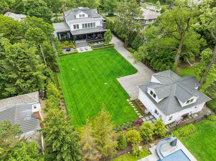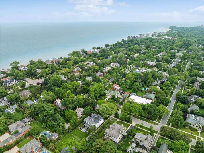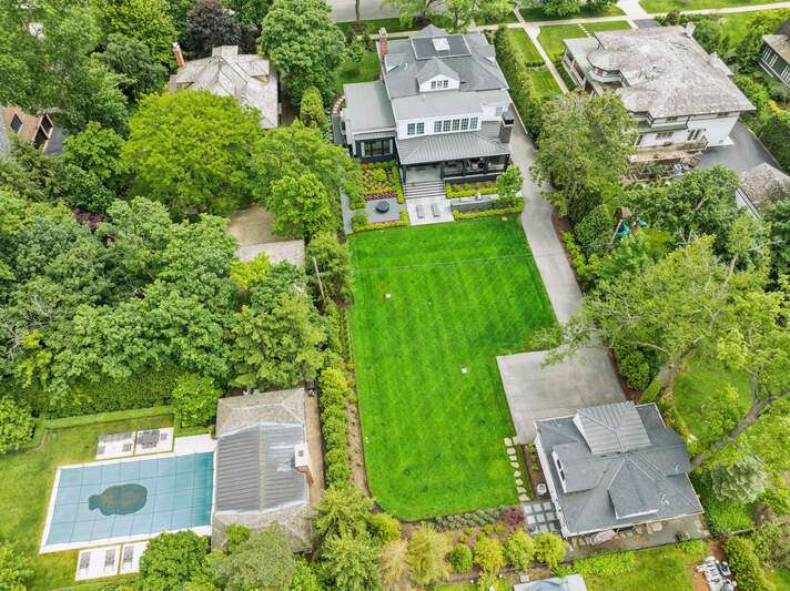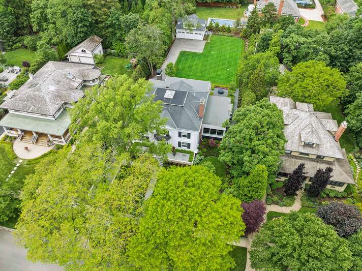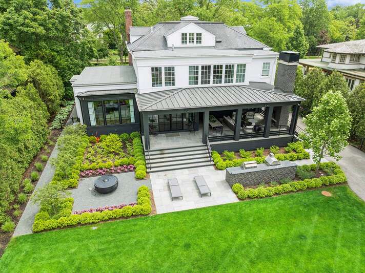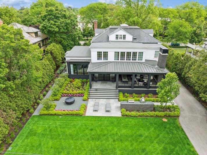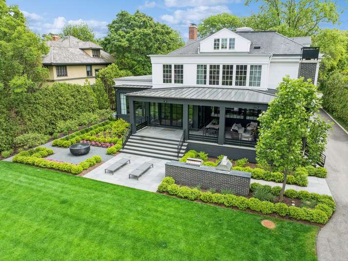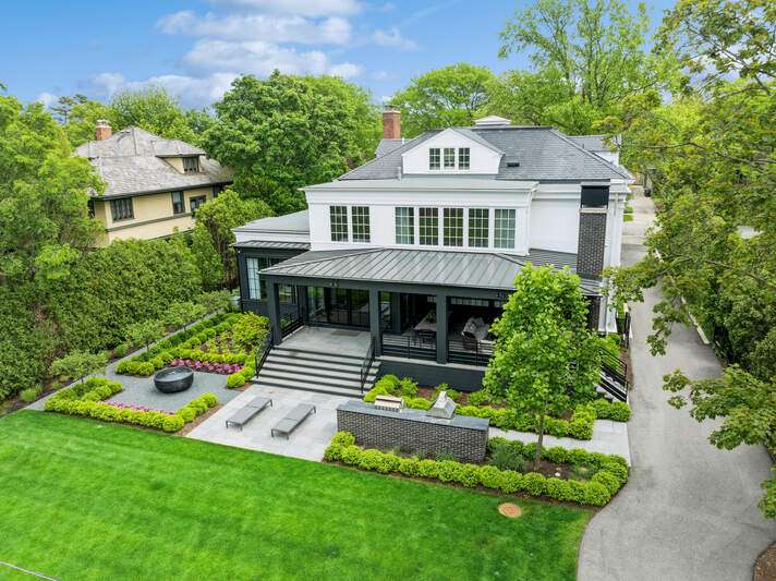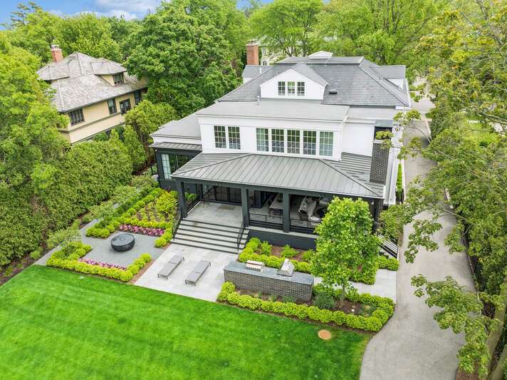 Historical Character meets Elegant Modern Living! Experience the best of Kenilworth in this perfectly located historic home one block to the beach, schools, town, and trains. Originally built in 1896 by renowned architect Franklin Pierce Burnham, it was completely gutted and reborn in 2022 as a stunning showcase of customized modern design while maintaining its classic charm. As you enter through the original facade, the elegant staircase and vintage French oak floors welcome and guide you through the open floor plan. Once inside, you'll find the formal dining and living rooms. Custom steel and glass cabinets lead the way to the heart of the home. The open floor plan of the kitchen, breakfast and family rooms spans over 1500 sq. ft., and were perfectly designed for daily life and entertaining. A Roll & Hill pendant light hangs over the beautiful 14 ft. Paonnazzo marble island in the kitchen, which includes custom cabinetry, high-end Subzero and Wolf appliances, and a Galley workstation to keep the main kitchen area free of clutter. Floor to ceiling windows make up the entire back of the home, filling the space with natural light and offering views of the meticulously landscaped backyard. On the second floor, you will find the first-class primary suite, with an opulent spa-like ensuite bath featuring a glass-enclosed shower, soaking tub, and dual vanity. A pair of luxurious, expansive walk-in closets with built-in shelves provide ample storage space. Two additional oversized ensuite bedrooms are joined by a lounge area that can be closed off with sliding doors for extra privacy for work or play. Just a few steps up the open staircase, the third floor boasts two more bedrooms and another bathroom with dual vanity. The lower level has something for everyone: a spacious family room, game room, media room perfect for movie nights, gym, 500+ bottle wine cellar, an additional bathroom, and plenty of storage. Outside, the impressive covered patio acts as a cohesive extension of the home with a large sitting area, complete with a fireplace and ceiling heaters to allow for exceptional indoor/outdoor living year-round. The backyard also has a kitchen area with a barbecue and pizza oven, ideal for gatherings with family and friends. Above the heated three-car garage is a bedroom/office plus bathroom - use it for a private workspace, extended visitors, or however else you see fit. No details were overlooked when renovating this home to maintain its timeless elegance with modern comfort. Only the finest materials were used, with several custom pieces to create the perfect fit. A Control4 home automation system has also been installed for the ultimate peace of mind. You don't want to miss out on this one