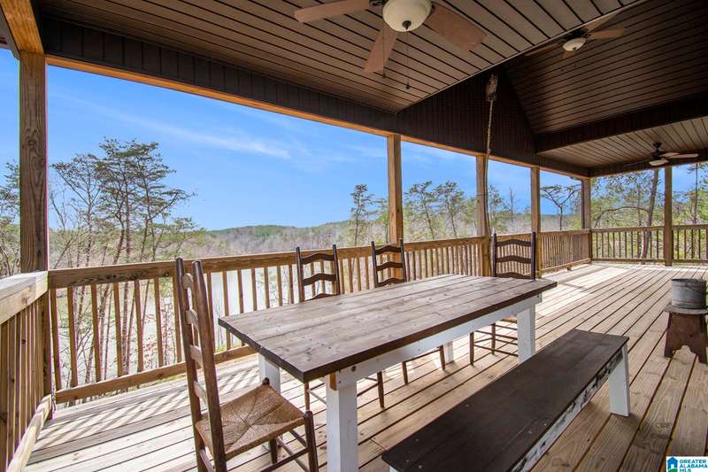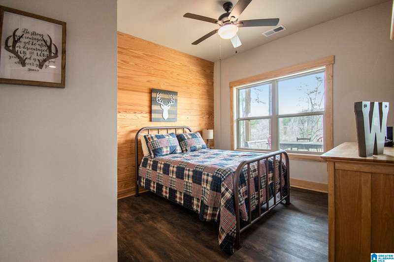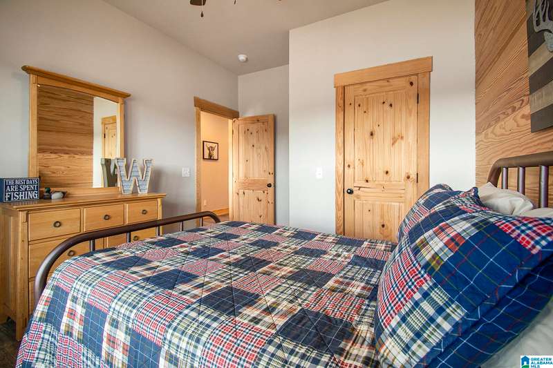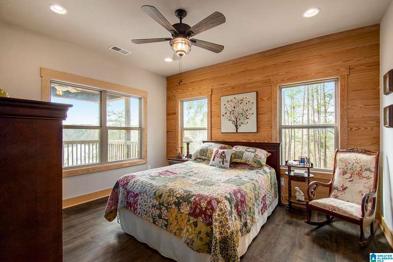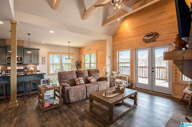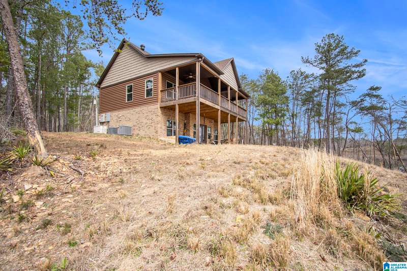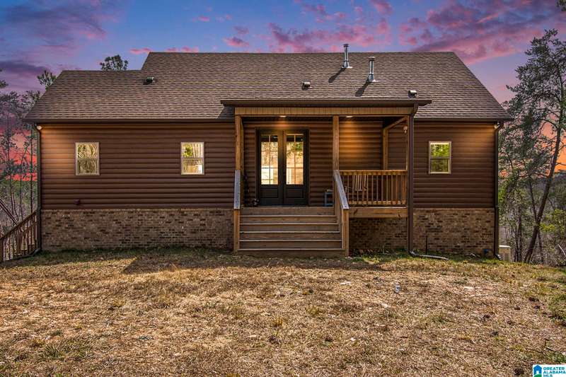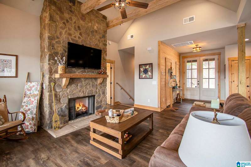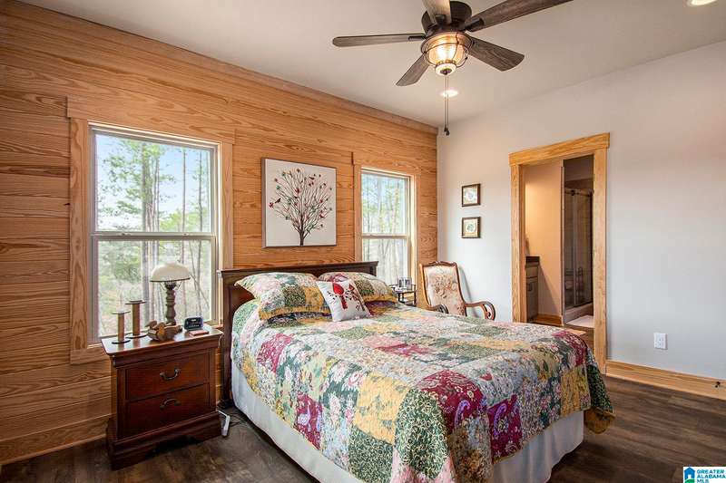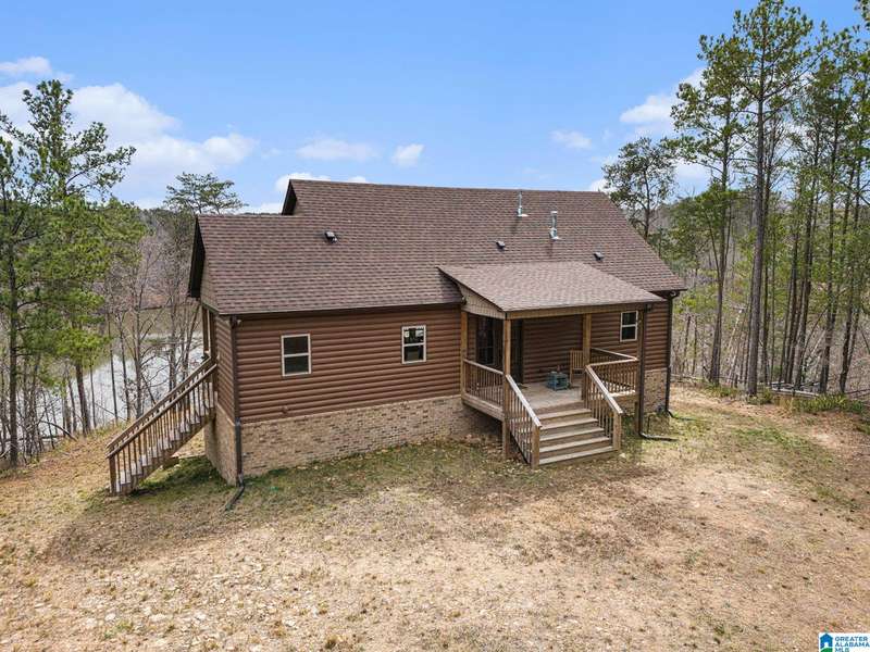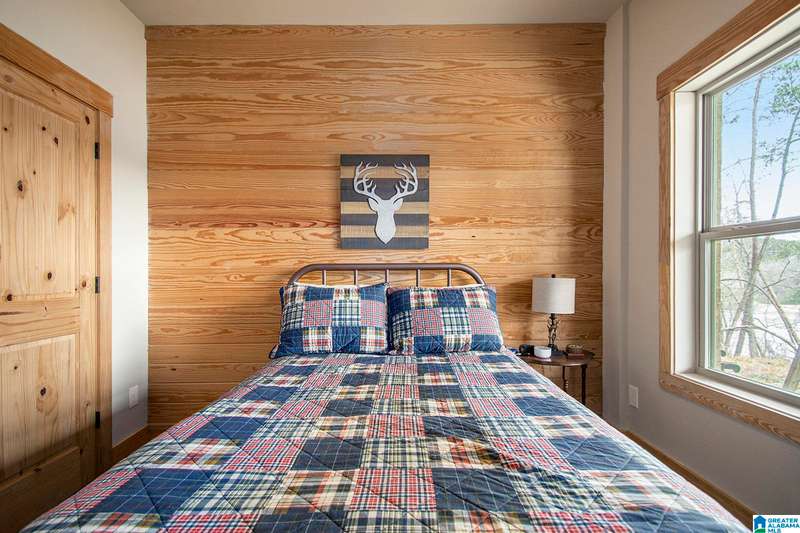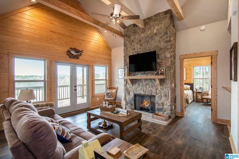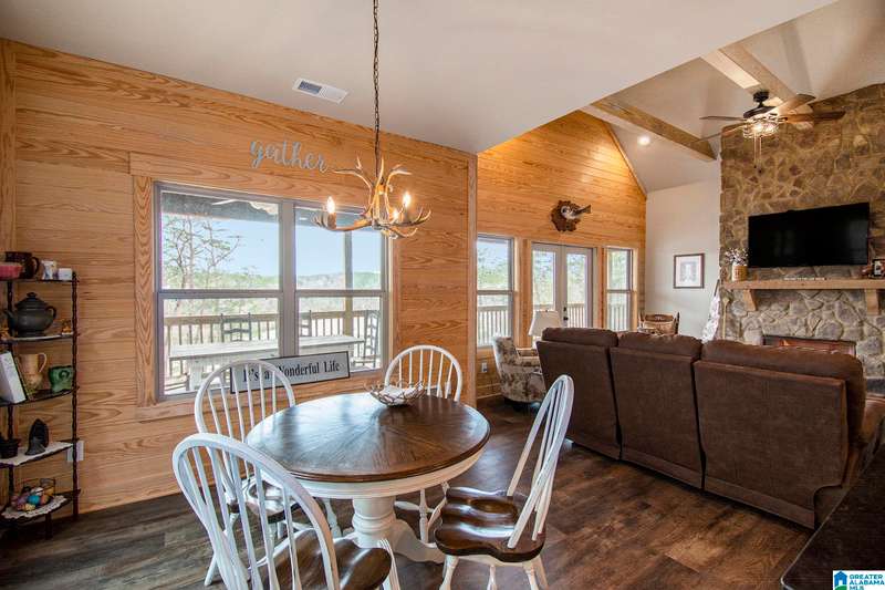 Nestled on 21.65 wooded acres in Pine Valley, a gated community, this charming rustic cabin offers the perfect blend of seclusion and modern comfort. Featuring hardwood floors throughout, tongue and groove accent walls, gorgeous kitchen with solid surface countertops and ample storage, oversized island, eat in area, and stunning floor to ceiling stone woodburning fireplace in the living room. Open floorplan with an abundance of windows to take in all the views. Primary bedroom on the main level with a luxurious shower & double vanity. Half bath and large laundry room on the main level as well. 2 additional large bedrooms, den/game room and full bath on the basement level. Enjoy break taking views from covered porches on both levels. Outdoor enthusiasts will love the private boat dock, excellent hunting, and fishing opportunities right at their doorstep. No maintenance vinyl siding that looks like a log home! Comes with Whole house generator! Rustic charm and style with privacy
