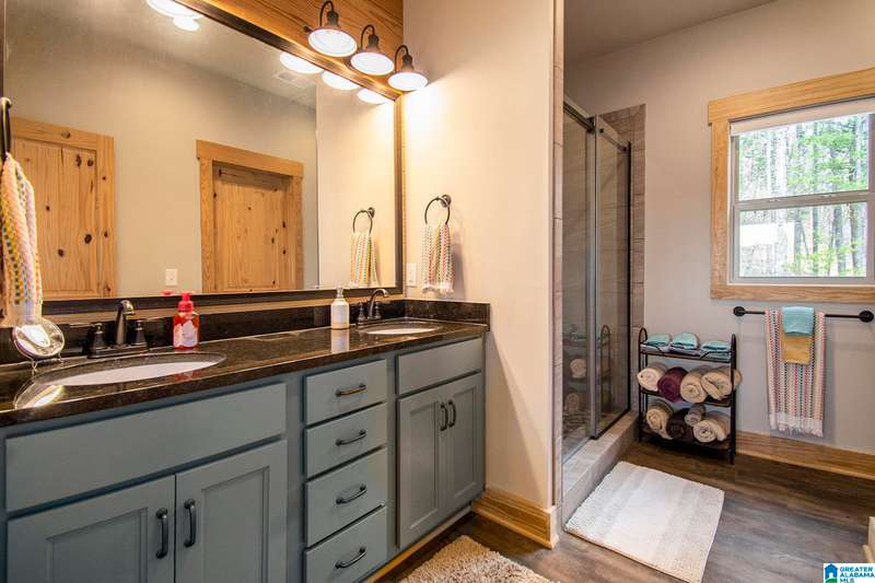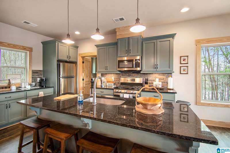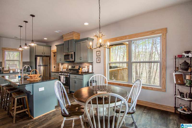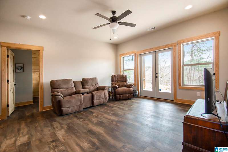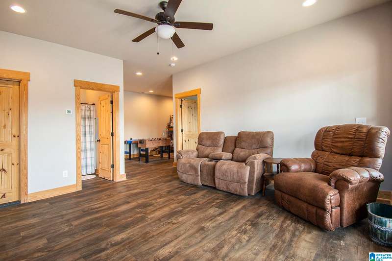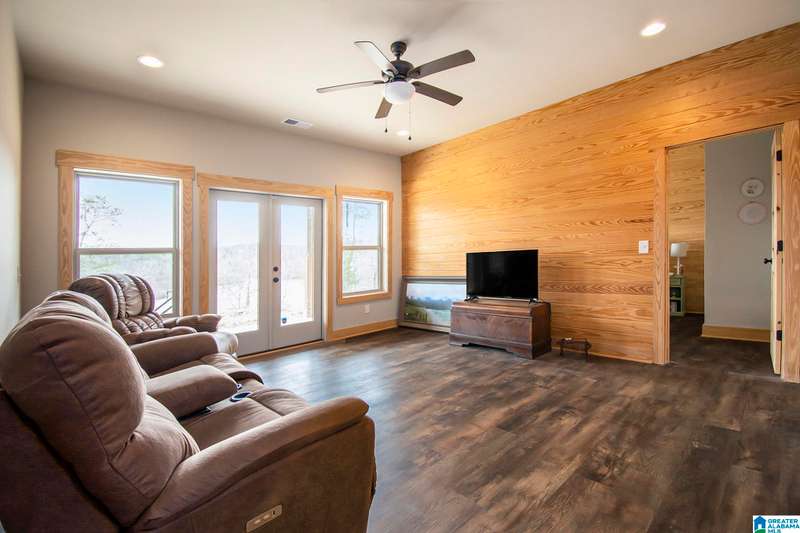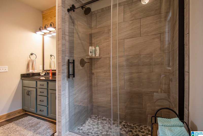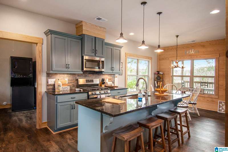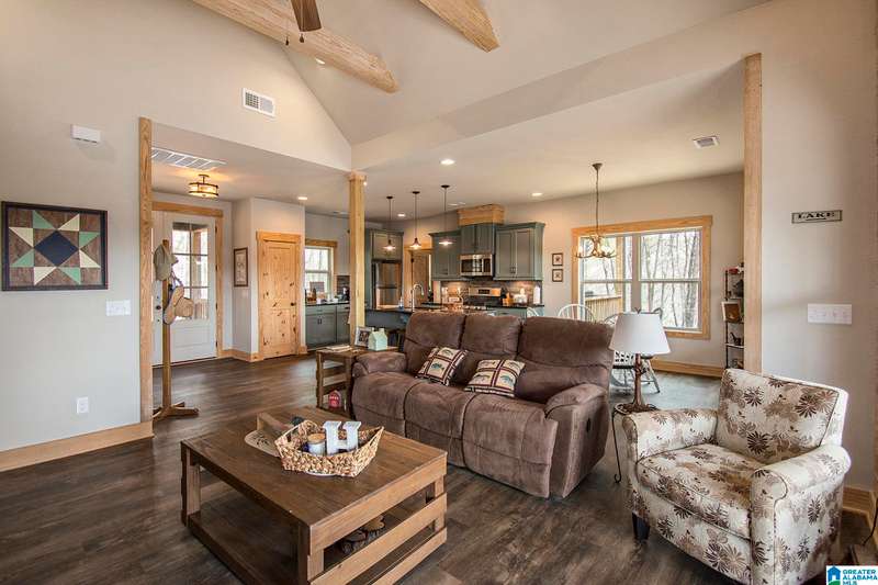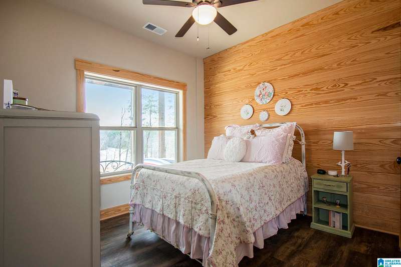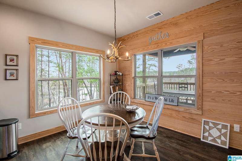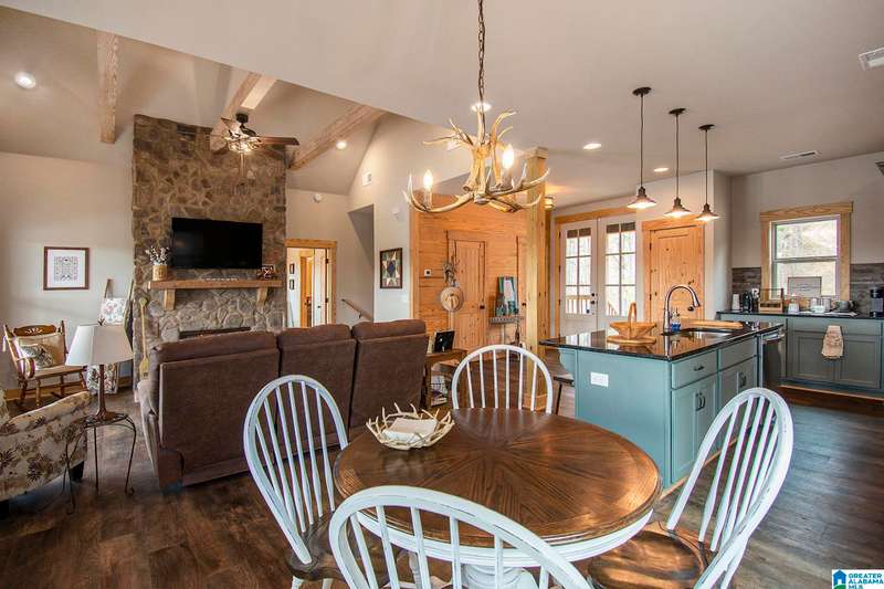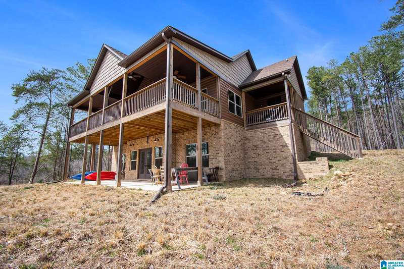 Nestled on 21.65 wooded acres in Pine Valley, a gated community, this charming rustic cabin offers the perfect blend of seclusion and modern comfort. Featuring hardwood floors throughout, tongue and groove accent walls, gorgeous kitchen with solid surface countertops and ample storage, oversized island, eat in area, and stunning floor to ceiling stone woodburning fireplace in the living room. Open floorplan with an abundance of windows to take in all the views. Primary bedroom on the main level with a luxurious shower & double vanity. Half bath and large laundry room on the main level as well. 2 additional large bedrooms, den/game room and full bath on the basement level. Enjoy break taking views from covered porches on both levels. Outdoor enthusiasts will love the private boat dock, excellent hunting, and fishing opportunities right at their doorstep. No maintenance vinyl siding that looks like a log home! Comes with Whole house generator! Rustic charm and style with privacy