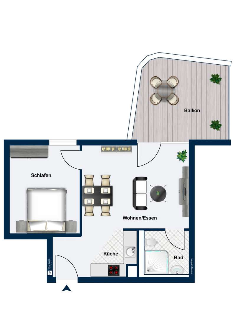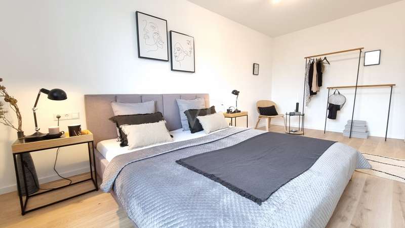 **Modern 2-room condominium in first occupancy - High-quality new build with well thought-out floor plan** This attractive 2-room condominium with a beautiful balcony is located in a new apartment building, which is expected to be completed in April 2027. The apartment combines contemporary living comfort with high-quality fixtures and fittings and an efficient floor plan on approx. 45.6 m² of living space. It is ideal for singles, couples or as a second home. The house will be built to KFN 55 energy efficiency standards. The high-quality bathroom is fitted with modern sanitary ware, tiled and has a floor-level shower and a towel radiator. Particular emphasis was placed on quality and comfort when selecting the materials and furnishing details. The entire apartment is equipped with underfloor heating, which ensures a pleasant and even temperature in all rooms. The windows will have triple glazing to ensure efficient heat and sound insulation. High-quality flooring will be laid in the living areas, underlining the modern appearance. The building technology meets the latest energy requirements. A modern elevator connects all floors without barriers. Additional amenities such as a private cellar room and bicycle and laundry room are available to all residents. You can also purchase an underground parking space for your car. The location is central, pleasantly quiet and offers an excellent infrastructure. Shopping facilities, doctors, restaurants and local public transport links are all just a few minutes away.