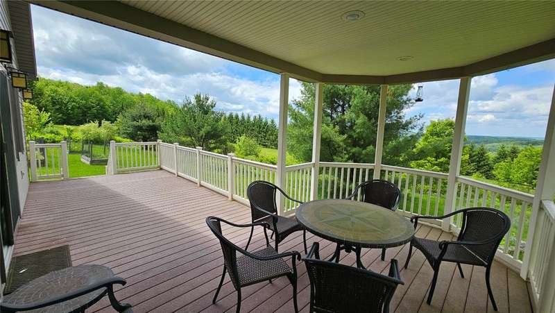 Back on the market, no fault of the home buyer had a change in plans so take advantage and come see for your self this beautiful country dream home. Energy-efficient living with stunning views! in this beautifully crafted 3-bed, 2.5-bath home nestled in a peaceful country setting. Designed with both sustainability in mind, this home features solar power, geothermal heating and central A/C. Inside, you'll find gleaming hardwood and ceramic tile floors throughout, accented with rich custom wood trim that adds warmth and character to every room. The spacious layout is perfect for both quiet nights and entertaining, with large windows that fill the space with natural light and showcase the serene surroundings. Step outside to your composite deck?ideal for morning coffee or sunset dinners with breathtaking views of the countryside. The property also features organic raised garden beds. For hobbyists, homesteaders, or those seeking additional space, a stunning post and beam barn awaits