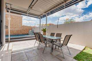 UPMARKET CLUSTER HOME. This 4-bedroom cluster home in Meyersdal sounds like a stunning property. Here are some key features : - Property Details - Size: Approximately 377 sqm under roof - Bedrooms: 4 spacious bedrooms with doors to balconies - Bathrooms: 3 well-appointed bathrooms plus a guest toilet - Kitchen: Stunning kitchen with solid wood cupboards, Caesar stone tops, and a wrap-around breakfast nook - Reception Rooms: Spacious open-plan reception rooms with sliding doors overlooking the swimming pool - Additional Features - Swimming Pool: Sparkling blue swimming pool - Garage: Double automated garage plus extra visitor parking - Security: Well-secured complex - Amenities: Close to all amenities - Other Features - Decor: Professionally decorated with blinds - Finishes: Stunning finishes throughout the property If you're interested in learning more about this property or would like to schedule a viewing, I recommend contacting a property expert. *Extreme care has been taken to ensure that all representations contained in this advertisement are accurate and is provided on an ?Ç£as is?Ç¥ basis with no guarantees whatsoever. The representations herein has not been compiled to meet a Purchaser?ÇÖs individual requirements and it remains the Purchaser?ÇÖs sole responsibility to inspect the property duly prior to entering into any purchase agreement. The representations herein does not constitute the terms of sale as the images and descriptions are merely indicative. Chas Everitt assumes no responsibility for any errors and we reserve the right to correct/change/update the advert at any time without prior notice.*