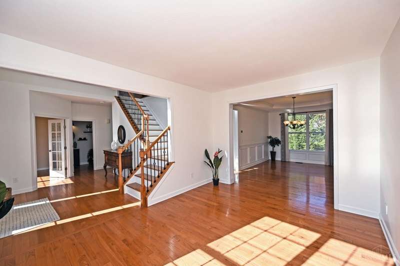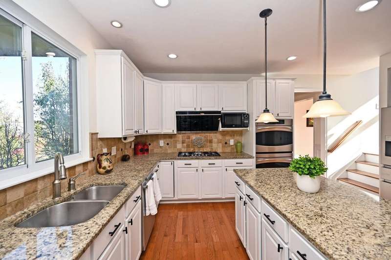 Gorgeous 5-bedroom, 4.5-bath updated home filled with natural light! This bright, sunny home features a finished basement with a gym, recreation room, home theater, and full bath. Over 5000 sq ft living space. Large, updated gourmet kitchen with stainless steel appliances opens to the family room, which offers a wall of windows, built-ins, and a gas fireplace. Enjoy formal living and dining rooms, a first-floor office, and 9-foot ceilings throughout the main level. Beautiful wood floors extend through the entire home. The huge master suite includes a spacious walk-in closet with built-ins and a luxurious garden bath. There's also a guest suite and convenient second-floor laundry. A covered porch can be used as a summer kitchen and overlooks the trees. Whole house fresh paint. Great move-in condition. Don't miss this beautiful home!