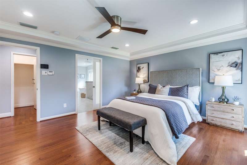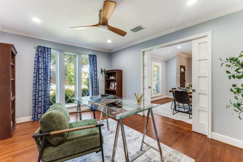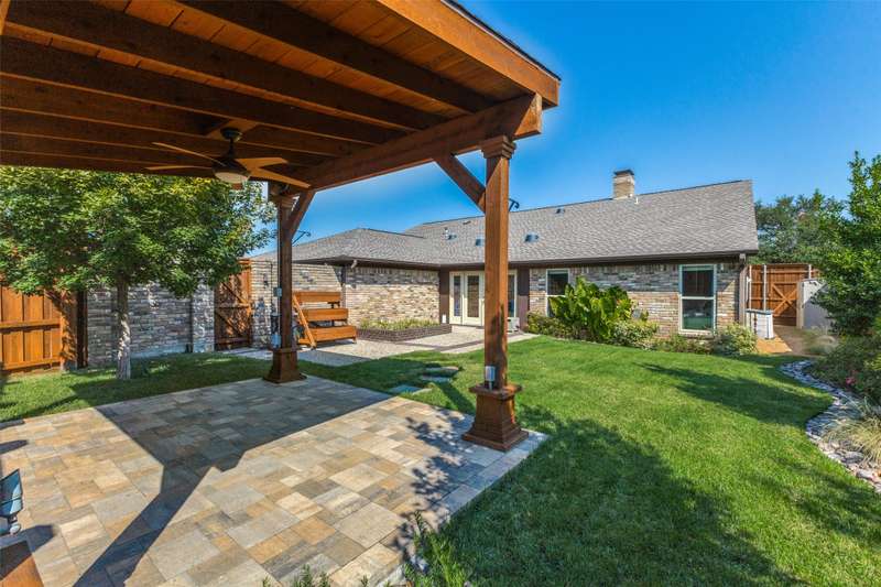 Back on the market through no fault of property. This beautifully remodeled 3-bedroom, 3-bath home with an office blends thoughtful updates with modern comfort. Fully redone in 2020, it offers ensuite baths for each bedroom, making it easy for everyone to have their own private retreat. The open layout is filled with natural light and flows across rich wood floors, creating a warm and welcoming atmosphere. At the heart of the home is a chefs and entertainers dream kitchen featuring a five-burner gas range, shaker cabinets, all KitchenAid appliances, triple bowl sink an oversized island perfect for gatherings, and a huge walk-in pantry with storage to spare. The primary bedroom features a huge bath with separate shower and tub. Don't miss the primary closet with folding area. The attention to detail carries outside where Texas native landscaping adds charm and curb appeal, while the board-on-board 8-foot fence and covered pergola with ceiling fan and lights provide the perfect space to enjoy evenings outdoors or host friends in style. With a balance of functionality and character, this home offers a space that feels both practical and special, ready to be enjoyed for years to come.