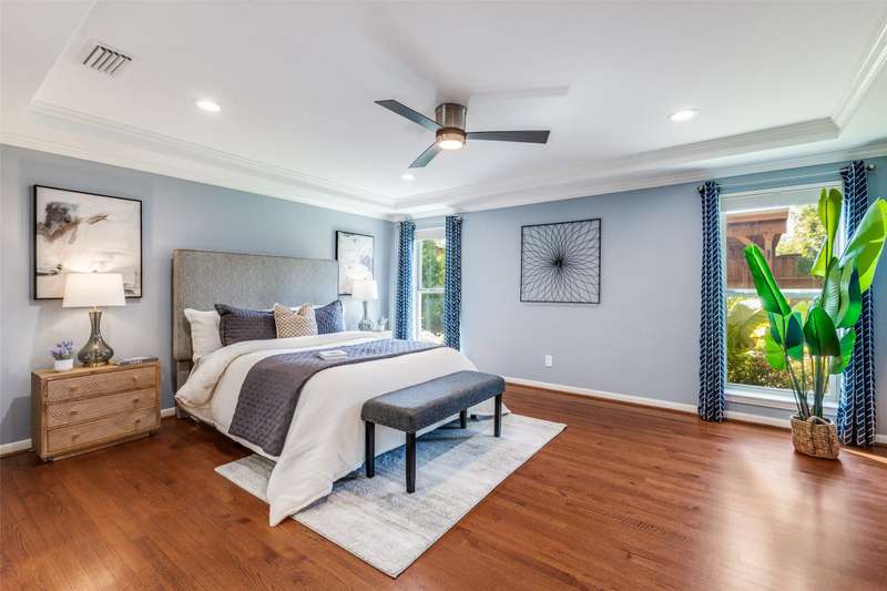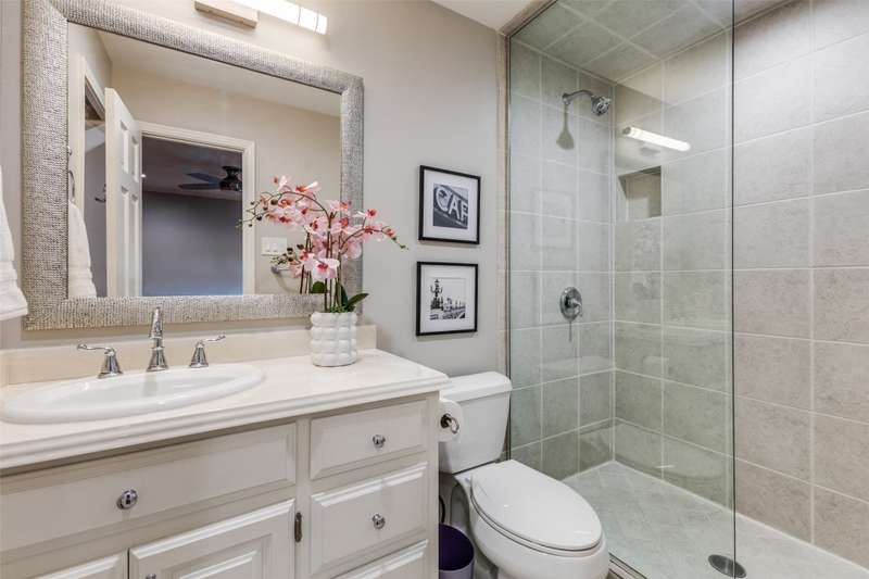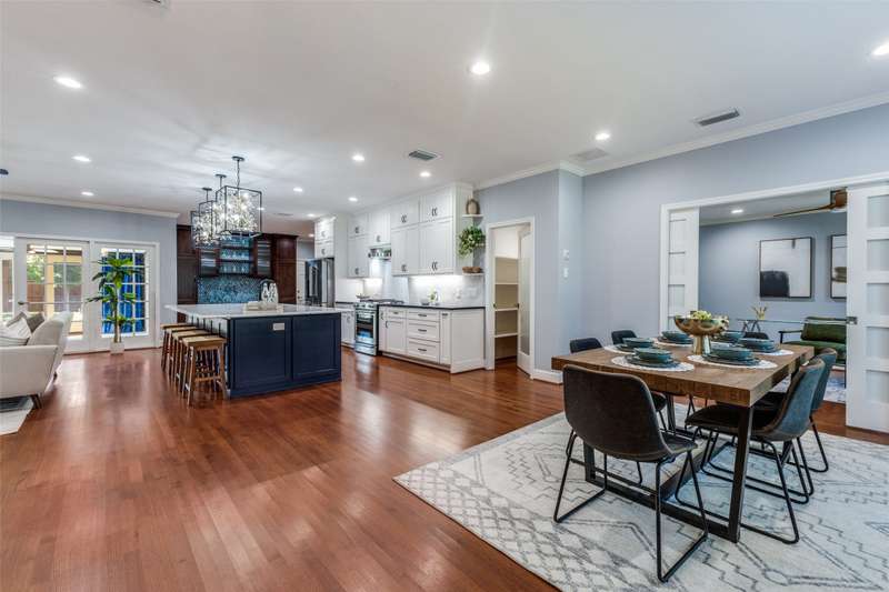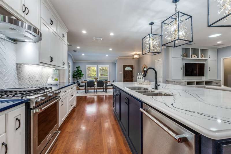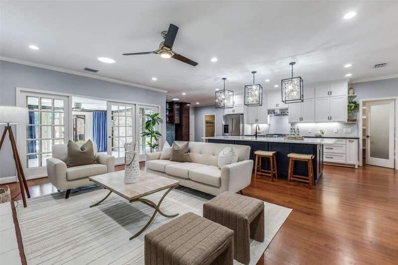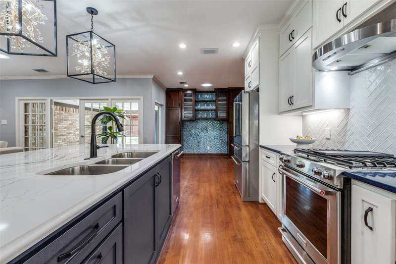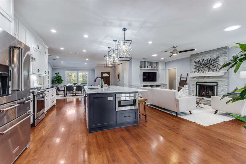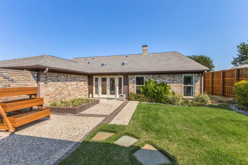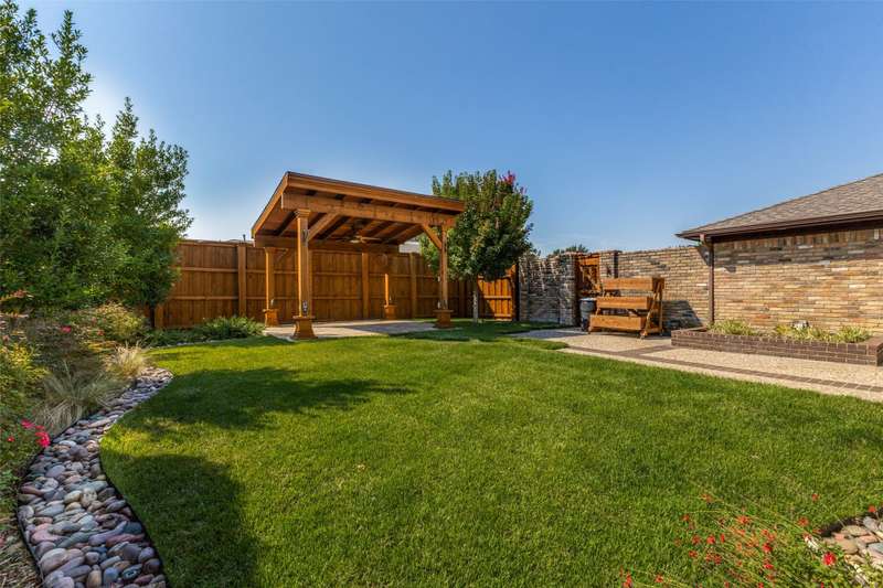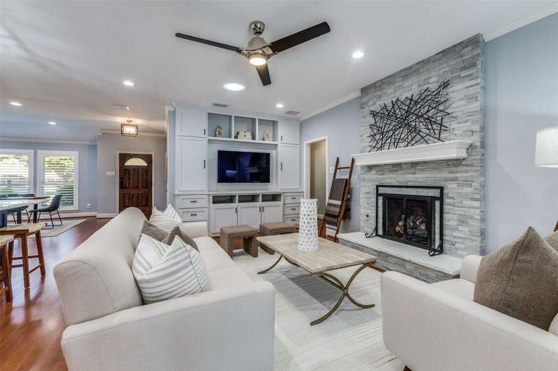 This beautifully remodeled 3-bedroom, 3-bath home with an office blends thoughtful updates with modern comfort. Fully redone in 2020, it offers ensuite baths for each bedroom, making it easy for everyone to have their own private retreat. The open layout is filled with natural light and flows across rich wood floors, creating a warm and welcoming atmosphere. At the heart of the home is a chefs and entertainers dream kitchen featuring a five-burner gas range, shaker cabinets, all KitchenAid appliances, triple bowl sink an oversized island perfect for gatherings, and a huge walk-in pantry with storage to spare. The primary bedroom features a huge bath with separate shower and tub. Don't miss the primary closet with folding area. The attention to detail carries outside where Texas native landscaping adds charm and curb appeal, while the board-on-board 8-foot fence and covered pergola with ceiling fan and lights provide the perfect space to enjoy evenings outdoors or host friends in style. With a balance of functionality and character, this home offers a space that feels both practical and special, ready to be enjoyed for years to come.