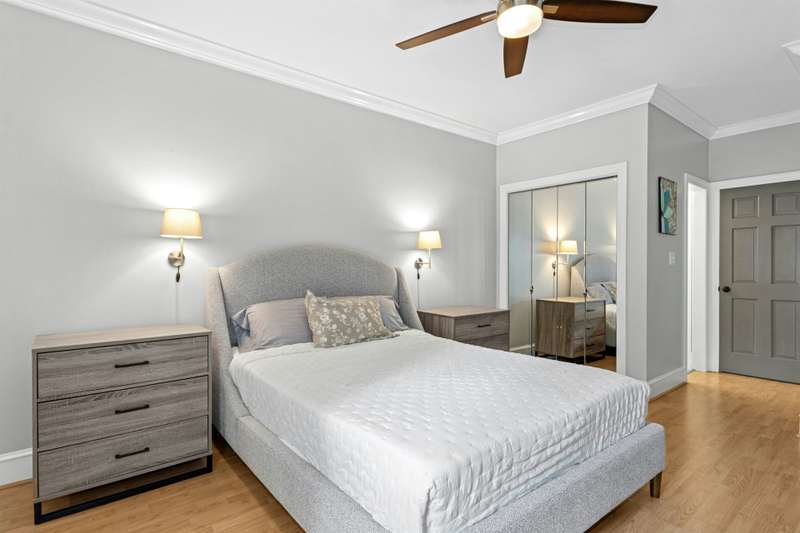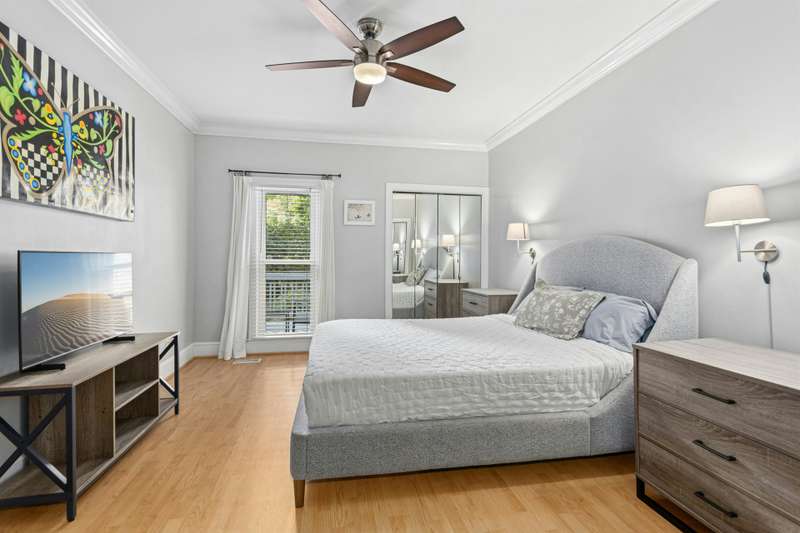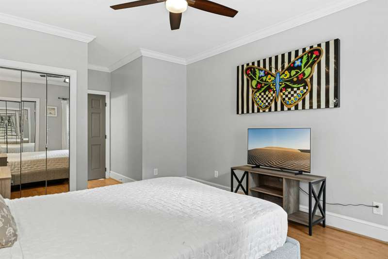 Experience the best of townhouse living in this charming end-unit, perfectly located for convenience and privacy. The main floor welcomes you with beautiful hardwood floors, a spacious first-floor primary suite providing ultimate comfort and ease, a formal dining room, and an updated eat-in kitchen ideal for everyday living and entertaining. The cozy living room features a fireplace and built-in shelving, creating a warm and inviting atmosphere. Step outside to a generous deck?an ideal space for outdoor entertaining and relaxing. Upstairs, two large bedrooms with walk-in closets and brand-new LVP flooring share a well-appointed bathroom. With fresh updates throughout and the privacy of an end unit, this home is ready for you to move in and make it your own. SELLER IS PAYING FIRST YEAR OF HOAS DUES. HVAC was replaced 10/2025