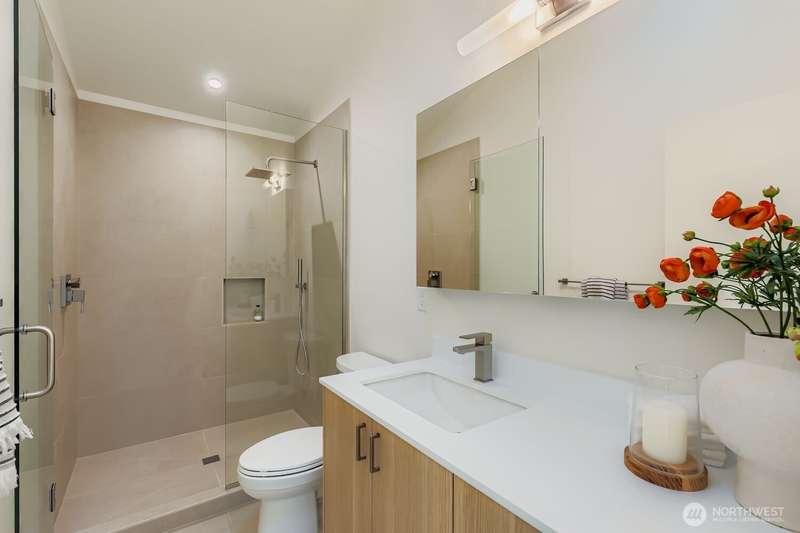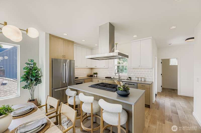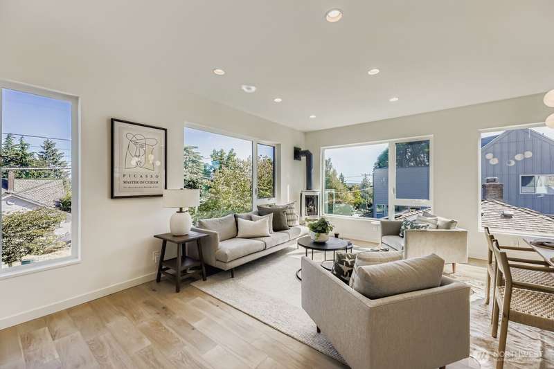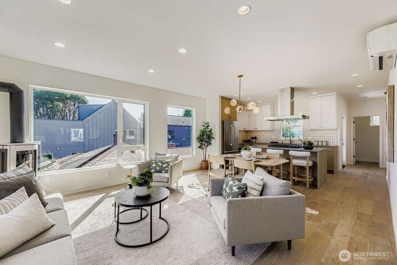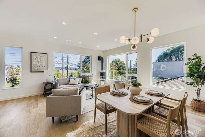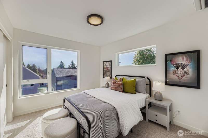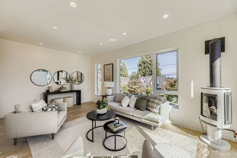 Experience everything Bryant has to offer in this beautifully constructed new home. Walk to University Village, Met Market, PCC, restaurants, breweries and more. One block from Bryant Elementary. Main level has built in entry storage and a guest suite that can be used as a bonus room, office, MIL. Features include a chef’s kitchen with six burner gas range, looking onto your living area with Jotul gas fireplace, Lake Washington, Cascade, and Rainier views! Three bedrooms upstairs including a primary suite with vaulted ceilings, and different views from each bedroom. More highlights include a one car garage, fenced yard, and a deck off the kitchen with amazing afternoon sun. HOA dues cover home owners insurance policy.