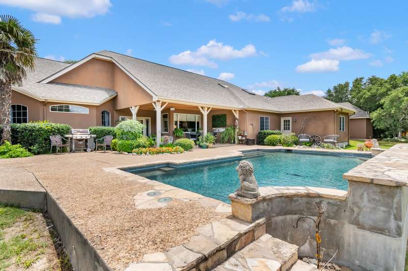 Offering 6405 sqft in total @ $218.42/sqft. This exquisite home offer a primarly living space of 5118sqft 4 bed 3.5 bath plus an attached guest home that is 1,287sqft 2 bed 2 full bath with ktichen, laundry, living/dinning. This exquisite home gives you the expansive space you have been wanting with the flexibility to design based on your needs and with the guest house fully attached, can combine to offer even more living space with just a door. Main home offers Formal living, and dining areas, fireplace, stainless steel appliances, double oven, and lots of tall windows to let the light in. The master bedroom is positioned to give you the feel of a retreat, with multiple walk-in closets double vanities and a whirlpool tub. Outside you will find an enormous covered patio and living space, Keith Zars pool, and the privacy of being on an acre that is a level lot. The home also offers an upstairs game room that gives your kids the perfect play area. Attached is the 2 bed 2 bath guest home fully equipped with its own kitchen and laundry. To finish off, parking is never an issue with a circular drive and an oversized 3-car garage that will fit evening your Texas-sized truck. This is the one you have been looking for. - 10/1/2025 3:17:10 AM