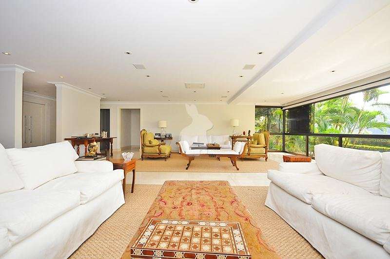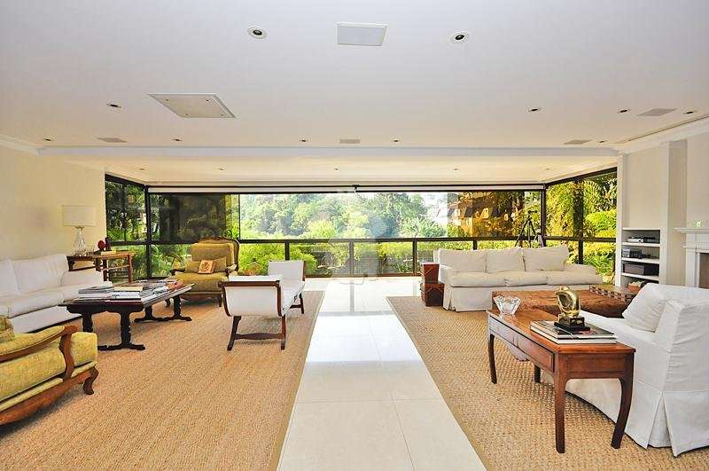 Imóvel de alto luxo, lindíssimo. Todo reformado, living para cinco ambientes com piso em mármore crema marfil, sala de jantar com terraço, dispensas de prataria e de vinhos, controle remoto para projetor e tela de home theater, cortinas da sala e luzes e terraço envidraçado.
