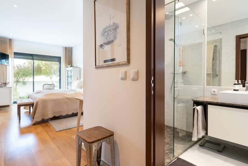 This fantastic apartment, in the prestigious Golden Triangle, in the Algarve, is located 300 meters on foot from the beach and has fabulous sea views as its strong point. With its modern interior, this apartment has unique details of charm and comfort. it consists of 3 spacious bedrooms, one of them en-suite, 3 bathrooms, a large fully equipped kitchen, an open-plan dining area and a large living room with direct access to the terrace and garden, and is characterized by its lobby and its large windows that provide natural light throughout the day from the bright Algarve sun. The apartment has quality finishes, an air conditioning system, underfloor heating, a sauna and double glazing. Inserted in a private condominium, with access to several swimming pools for adults and children, two parking spaces in the garage and a storage room. The apartment's excellent location means it is close to all the essential amenities of everyday life, the Algarve's most famous beaches and just 25 minutes from Faro International Airport. CHARACTERISTICS:Area: 199 m2 | 2 142 sq ft Bedrooms: 3 Bathrooms: 3 Garage: 2 Energy efficiency: C FEATURES: 3 bedrooms Equipped kitchen Air conditioning Sauna Terrace Garden 2 parking spaces Golden Triangle 300 meters from the beach Sea view