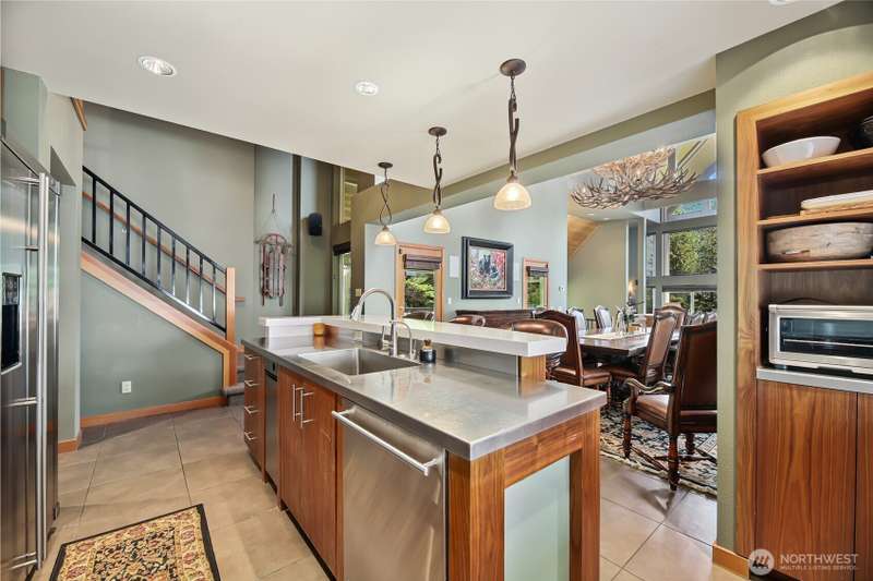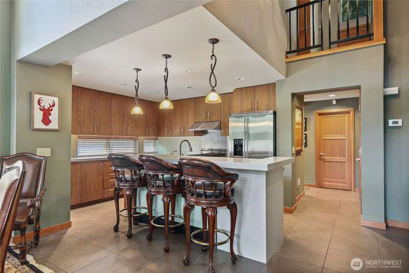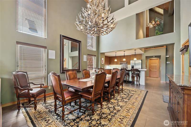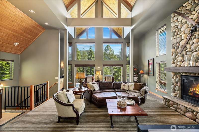 Stunning 7-bedroom, 6-bath lodge-style chalet is perfectly situated in the heart of Snoqualmie Pass & just steps to the ski slopes. Experience rustic elegance with soaring ceilings, exposed beams, radiant heat floors & modern updates throughout. Expansive, updated kitchen complete w/high-end appliances, sleek finishes, & butler’s pantry. Sleeping quarters consists of two levels, you'll have plenty of room for friends and guests. Private Primary on-suite located on upper level. Breathtaking mountain views, soak in the hot tub complete with a custom heated bench. Spacious 2-car garage offers convenience & extra storage. Whether you're hosting a crowd or seeking peaceful solitude, this home has space and style to match.