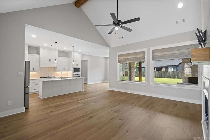 Located in the gated Hurricane Lake subdivision, this stunning 4-bedroom, 2.5-bath home offers nearly 3,000 sq. ft. of living space, a 3-car side-load garage, 10-foot ceilings, and an open/split floor plan with hardwood flooring throughout. Built in 2022, this home still feels brand new! With a spacious vaulted living room offering wood-beamed ceiling and a fireplace. Great room opens seamlessly to a show-stopping kitchen complete with quartz countertops, a large walk-in pantry, and a refrigerator that conveys with the home. The main-level primary suite offers a private escape, featuring a spa-like double shower, dual vanities, and convenient access to the laundry room. Three additional bedrooms on the main floor, upstairs a bonus room perfect for a home office, media room, or playroom. Home includes tankless water heater, sprinkler system, foam insulation, privacy fence, outdoor fireplace, mounted TV, window treatments, large covered patio. As a resident, you have exclusive access to private amenities such as a community pool, tennis and pickleball courts, and beautiful lake views!