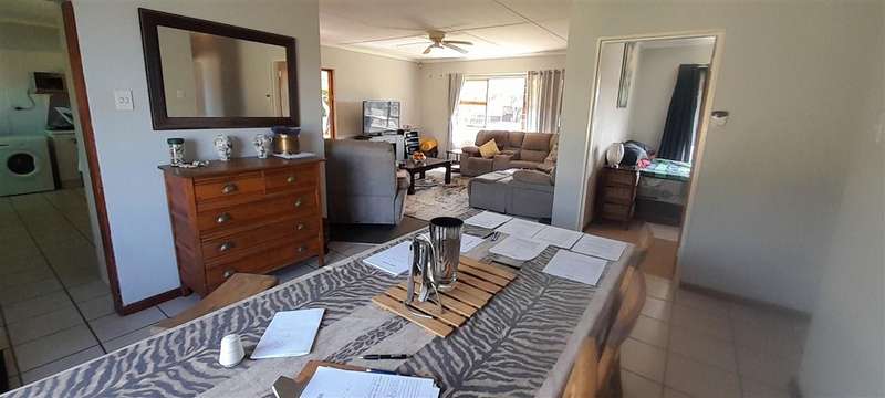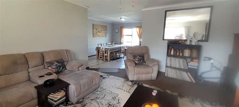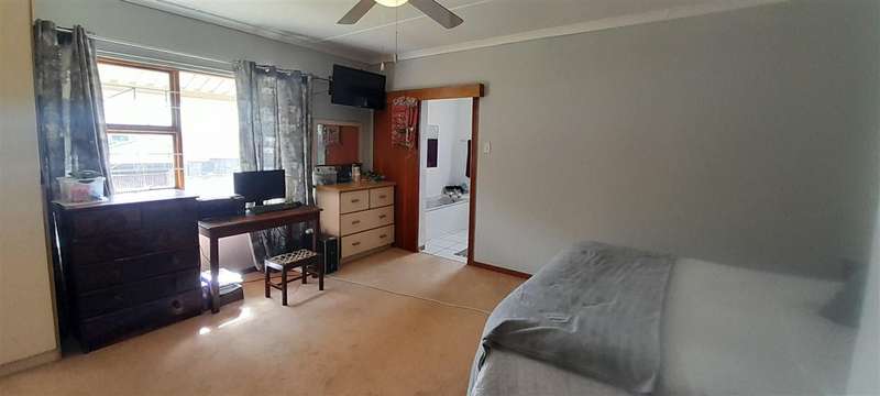 This light face brick home is on a good size walled stand. The front porch leads into the L-shaped lounge and dining room. The dining room is open plan to the kitchen with door out to covered patio with braai. Lovely spacious back garden. There are 2 family bedrooms with full family bathroom. The main bedroom has a study/ small lounge area and a full en-suite bathroom. Comfortable family residence.