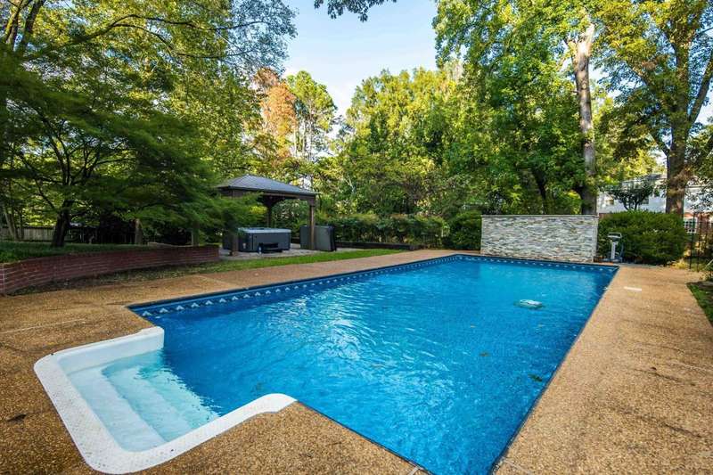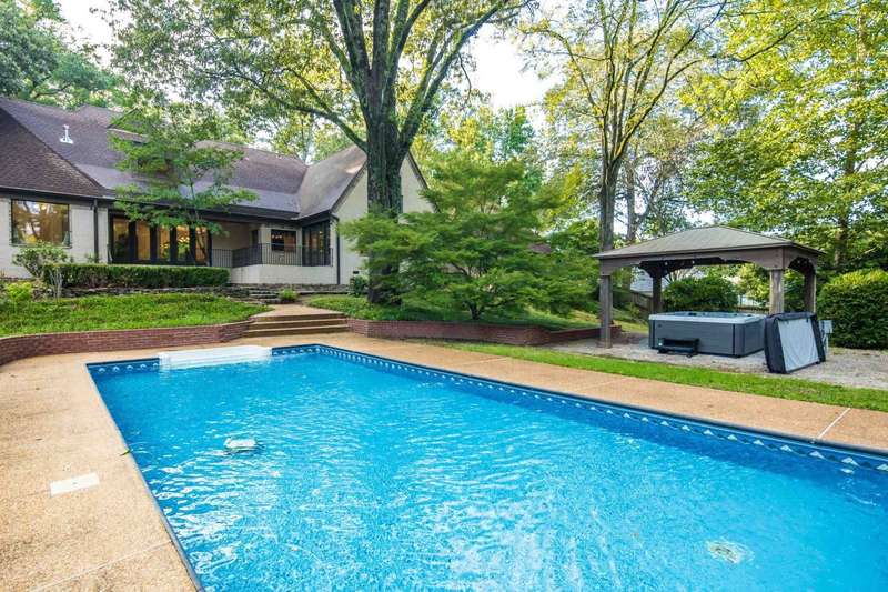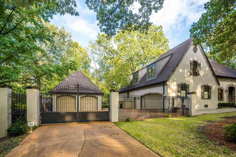 Spectacular one acre +/- English garden estate in the heart of Memphis, tucked in a quiet, established neighborhood. Designed to maximize views of the natural setting & back yard amenities, this home features lots of natural light, rich black walnut and oak floors, and stunning millwork. A chef's kitchen with custom cabinetry, gas cooktop, double ovens, dual dishwashers, and built-in refrigerator opens to inviting living and dining areas. The main level offers a luxurious primary suite with sitting room, flex room & dual baths plus a sought after second bedroom with private bath? perfect for guests or use as an office. Upstairs includes two large bedrooms, shared bath, a spacious bonus room. Outdoor living shines with a new pool (2022), gazebo-covered hot tub (2023), and private pickleball court. With a gated drive, attached two-car garage, plus detached two-car garage/workshop, this estate blends timeless elegance with modern updates for exceptional living and limitless entertaining.