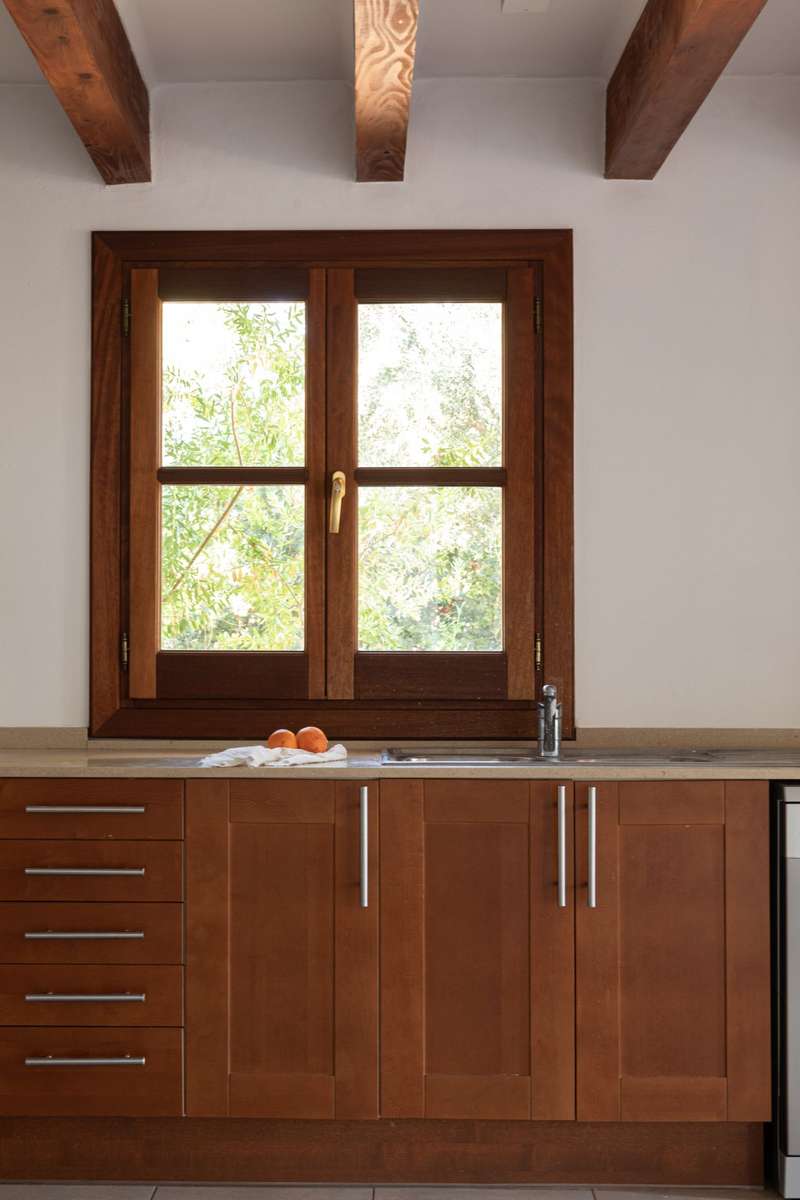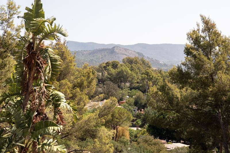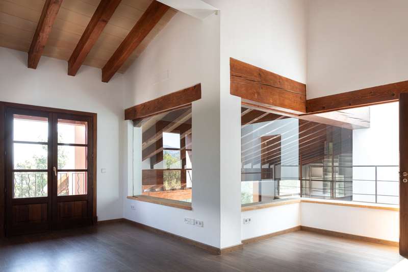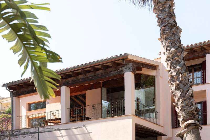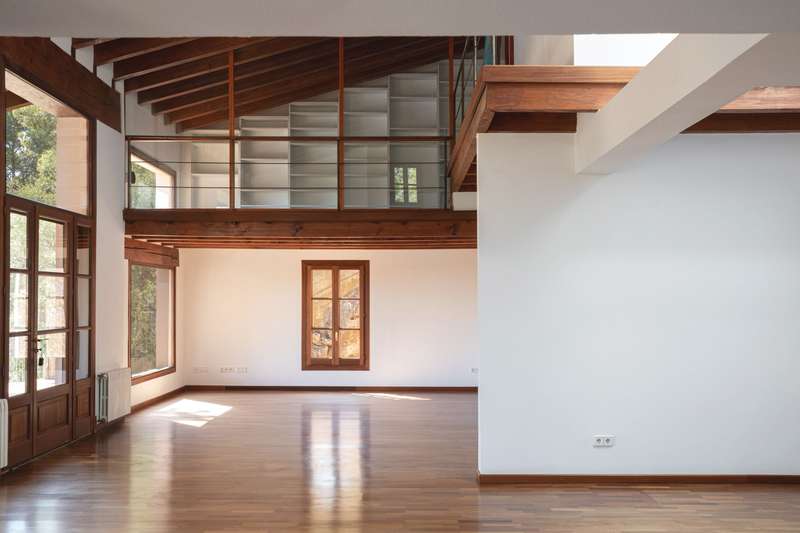 Just 15 minutes from Palma, in a highly sought-after area surrounded by forests, this exclusive villa will captivate you with its impressive architecture. Open spaces flow seamlessly into one another, with enormous wooden beams adding warmth and a sense of strength and stability, soaring ceilings up to 5 meters high, and expansive windows that fill the house with natural light. With a total surface of 450 m² spread over two floors, the property offers an exceptionally spacious and open-plan living room leading out to a covered terrace of around 45 m² with panoramic views, a large fully equipped kitchen, four double bedrooms with fitted wardrobes, and four bathrooms. The finishes are of the highest quality, including solid wood parquet flooring, double-glazed windows, and thick walls that ensure excellent thermal insulation. In addition, the property includes a basement with room for 4 to 5 large cars. The 3,000 m² plot provides generous outdoor spaces to enjoy: a large terrace with