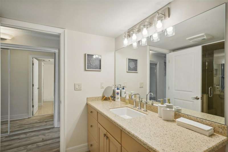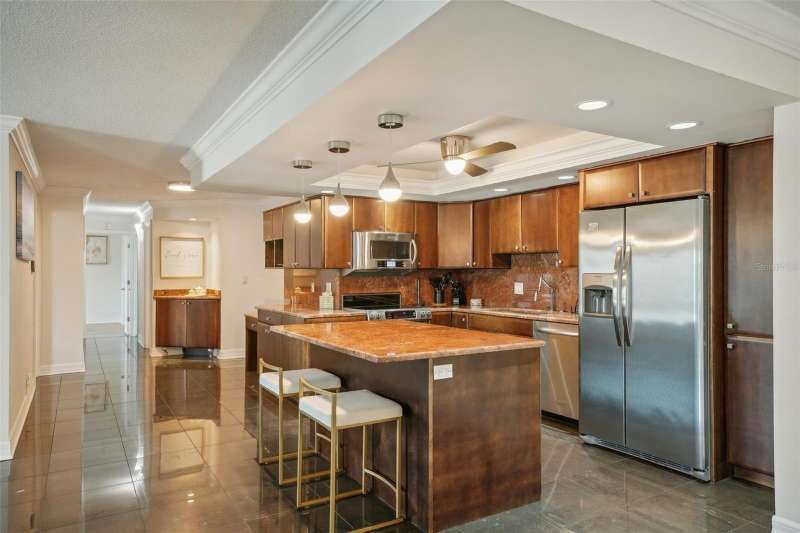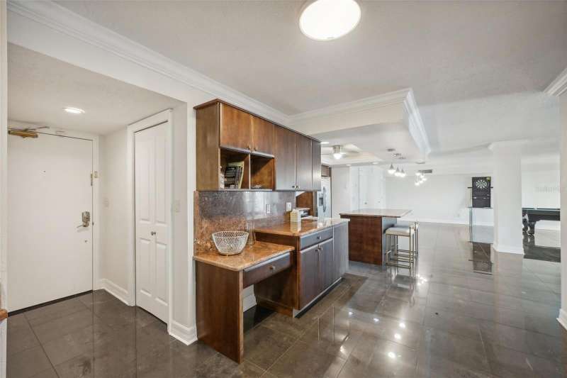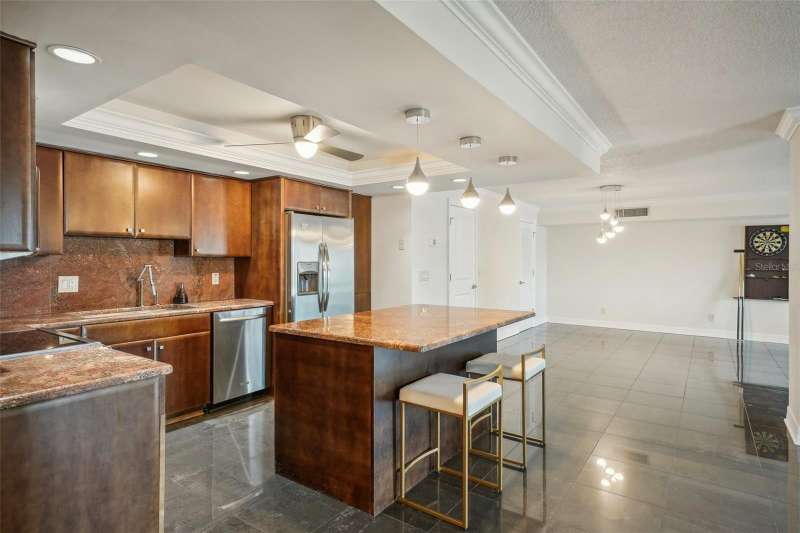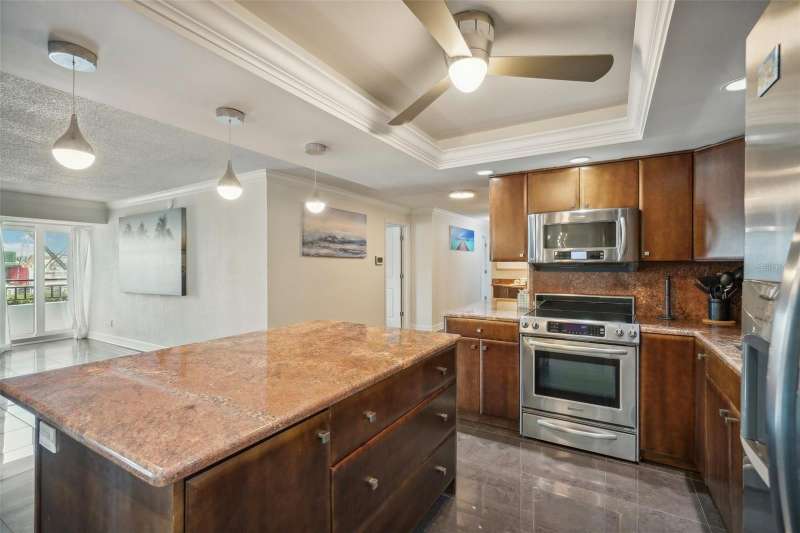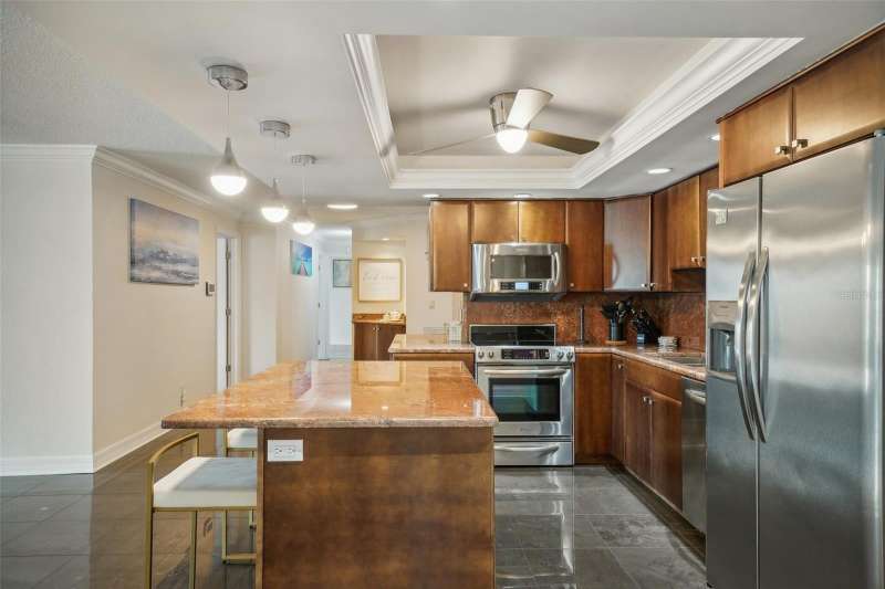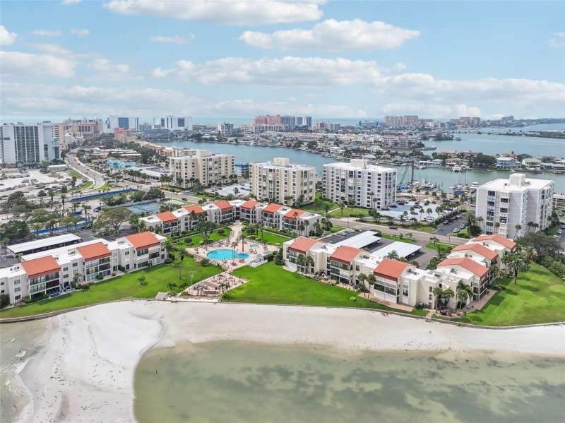 Discover your coastal retreat in this spacious 3-bedroom, 2-bathroom ground-floor condo offering 1,950 sq ft of living space. Features include marble flooring, a gourmet kitchen with granite countertops and custom solid wood cabinetry, and a large primary suite with his-and-hers closets and a luxurious en-suite bath. Two additional oversized bedrooms provide plenty of space for guests. The seller’s mortgage is assumable, giving buyers a unique opportunity to save on financing. This gated community offers a private beach, three heated and cooled pools, and a large heated spa, along with 24-hour security for peace of mind. Located near dining, entertainment, Pier 60, and the Clearwater Yacht Club. Experience the best of Clearwater living in a home that stands out.