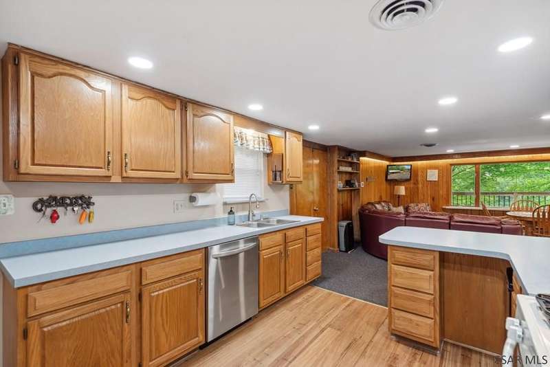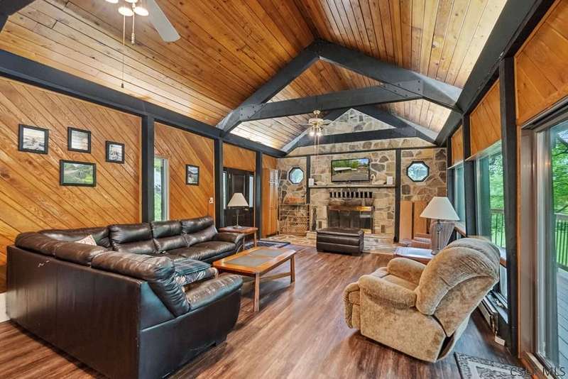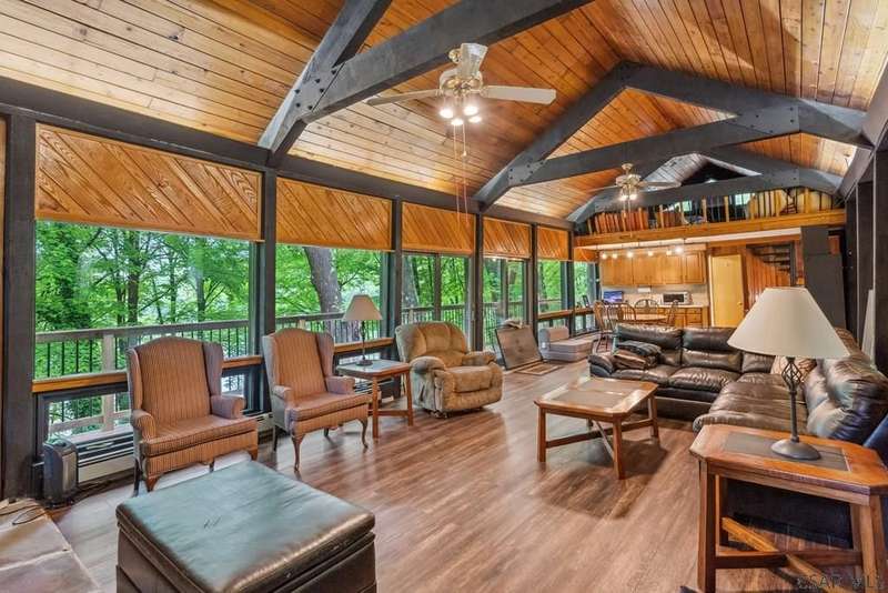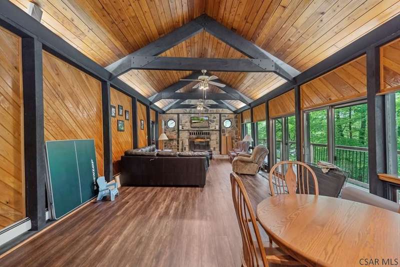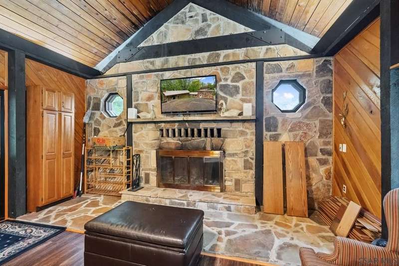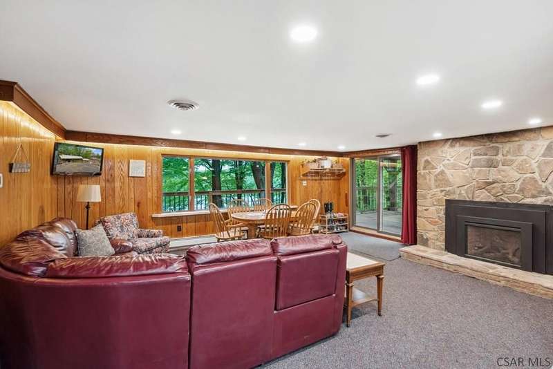PRIME LAKEFRONT PROPERTY at Yough Lake. 7500 sq. ft. property-2 parcels, perfect combination of rustic charm w/modern amenities, offering a serene lakeside living experience. Waterfront amenities include direct, walkable access to Lake & dock w/two boat slip permits. Constructed w/ stone exterior walls & metal roofs. Detached garage w/enough room for boat, side-by-side, & lake toys. Large beautiful windows showcase panoramic views, creating a bright & inviting atmosphere.Two stone fireplaces add warmth & character making this home comfy in the fall/winter. Functional kitchen w/stainless steel appliances,oak cabinetry, & plenty of counter space making it ideal to host family/ friends. OPEN HOUSE 6/29 NOON-2PM